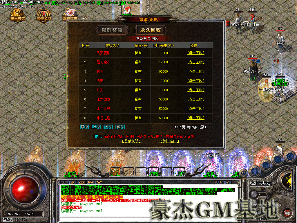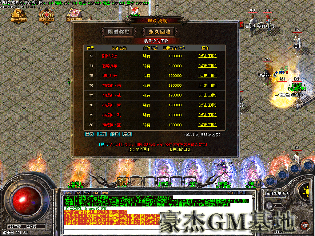 附带自动捡取 进行沙城捐献送回收宝箱附带在线回收 领取qq群礼包,购买血石