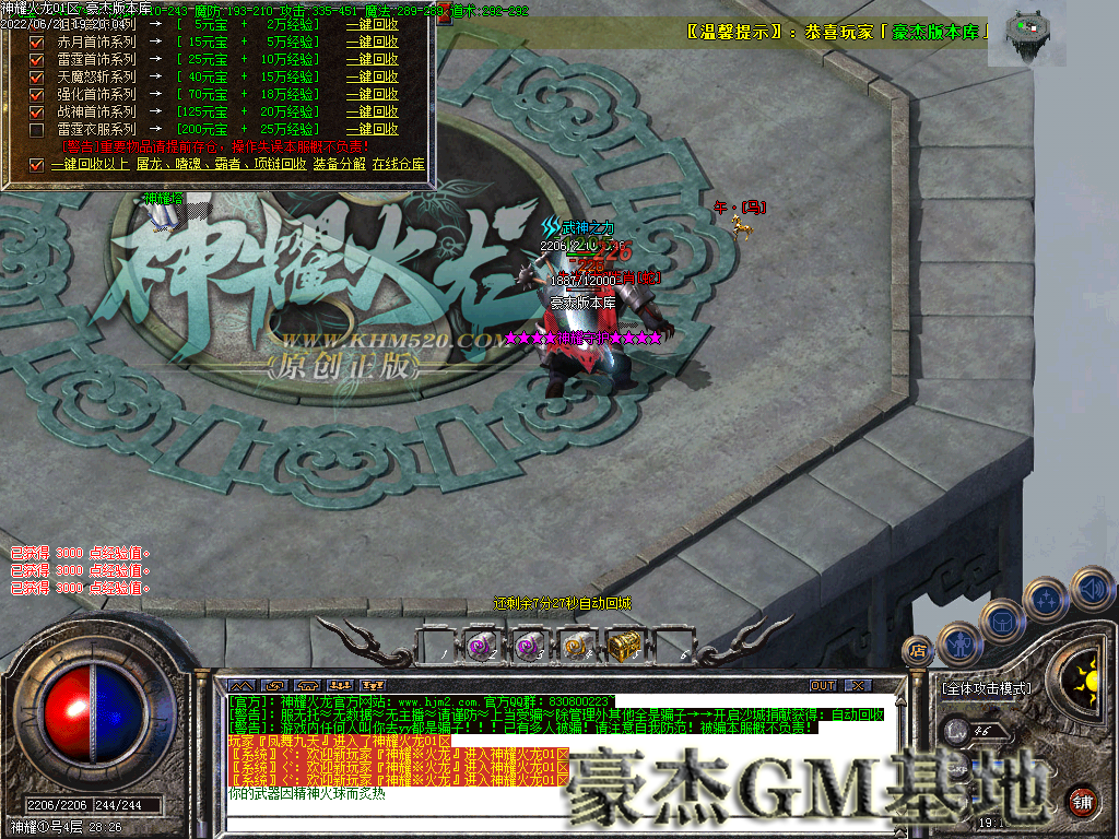 3000全满号:所有切割装备全部配齐 保证打怪速度 占据全部优势