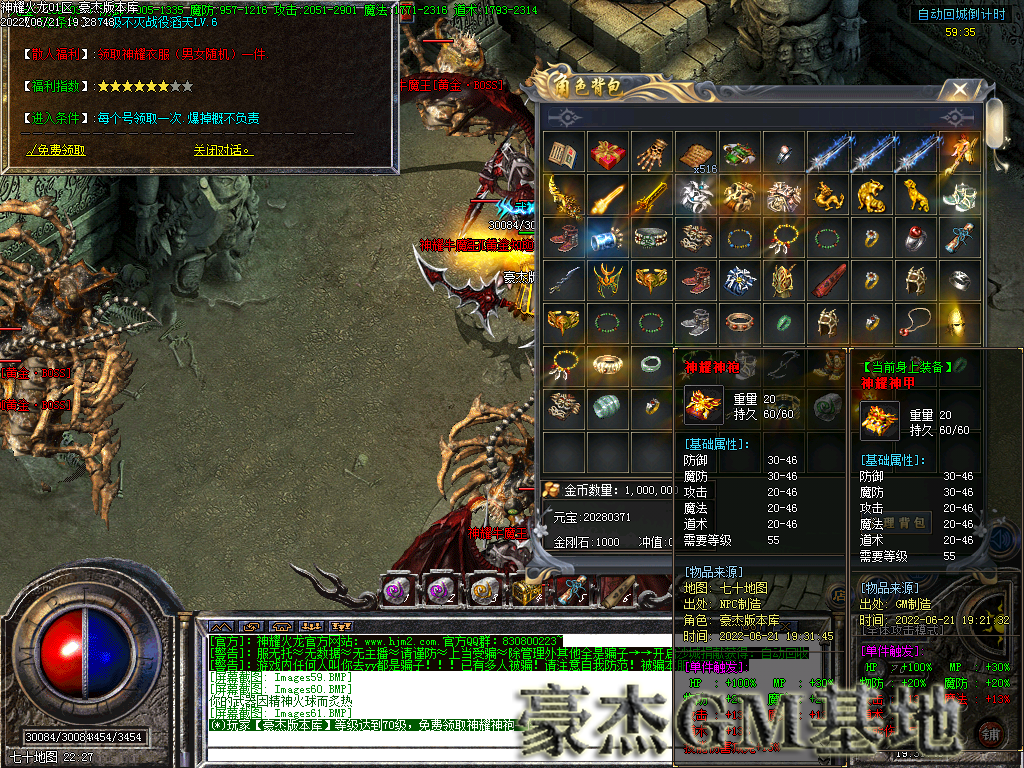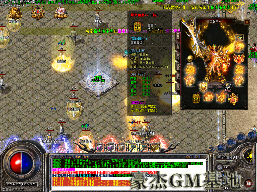 1.本服所有怪(小怪爆一切)都有几率爆出终极剑甲装备 保证所有装备爆率全部开放