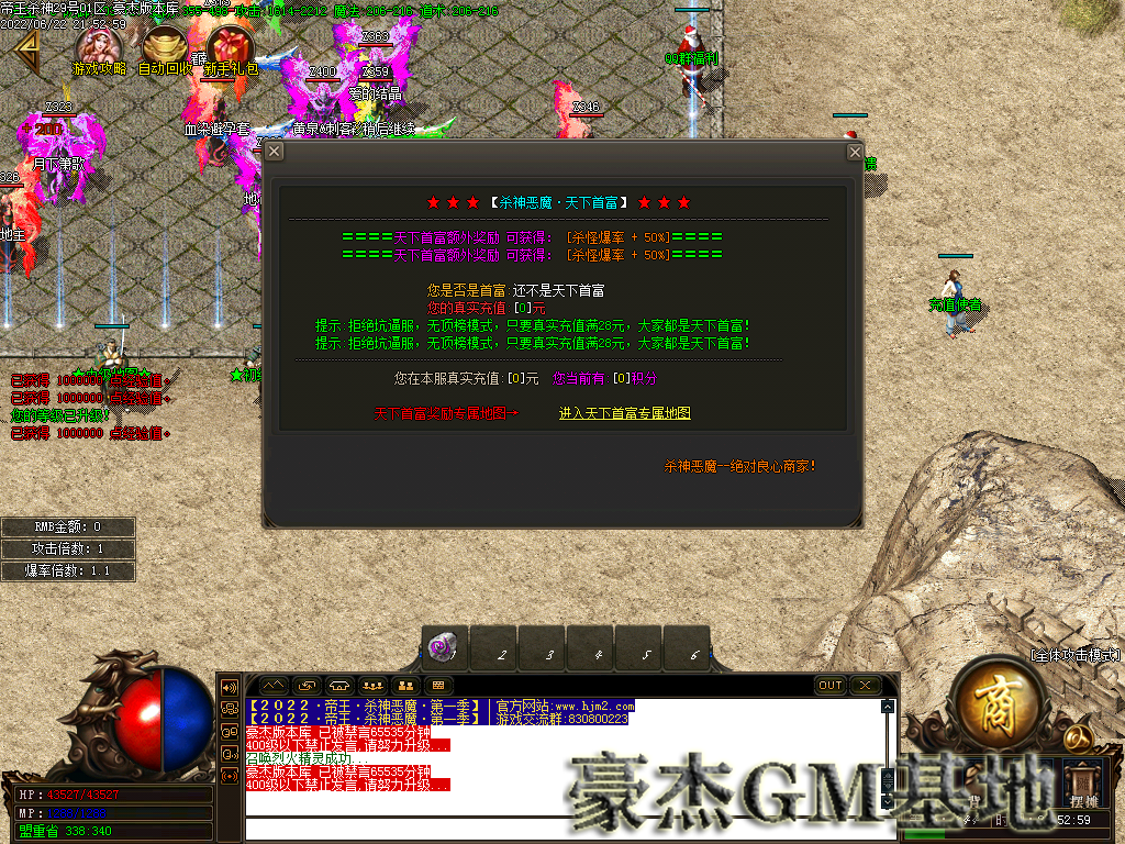 杀神币获得:充值,回收终极装备(回收NPC在小安全区附近)!