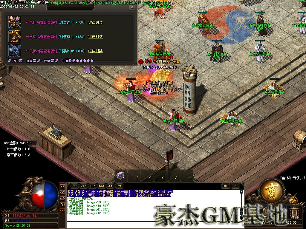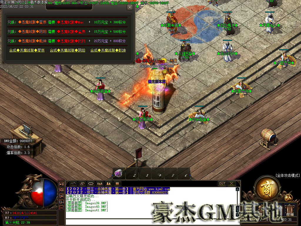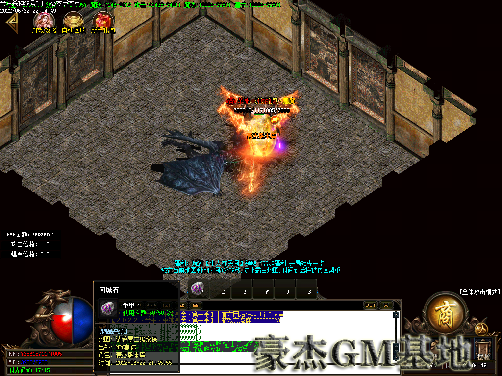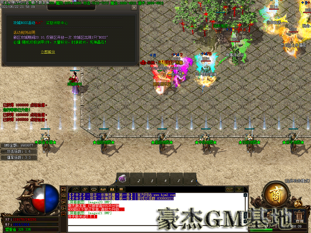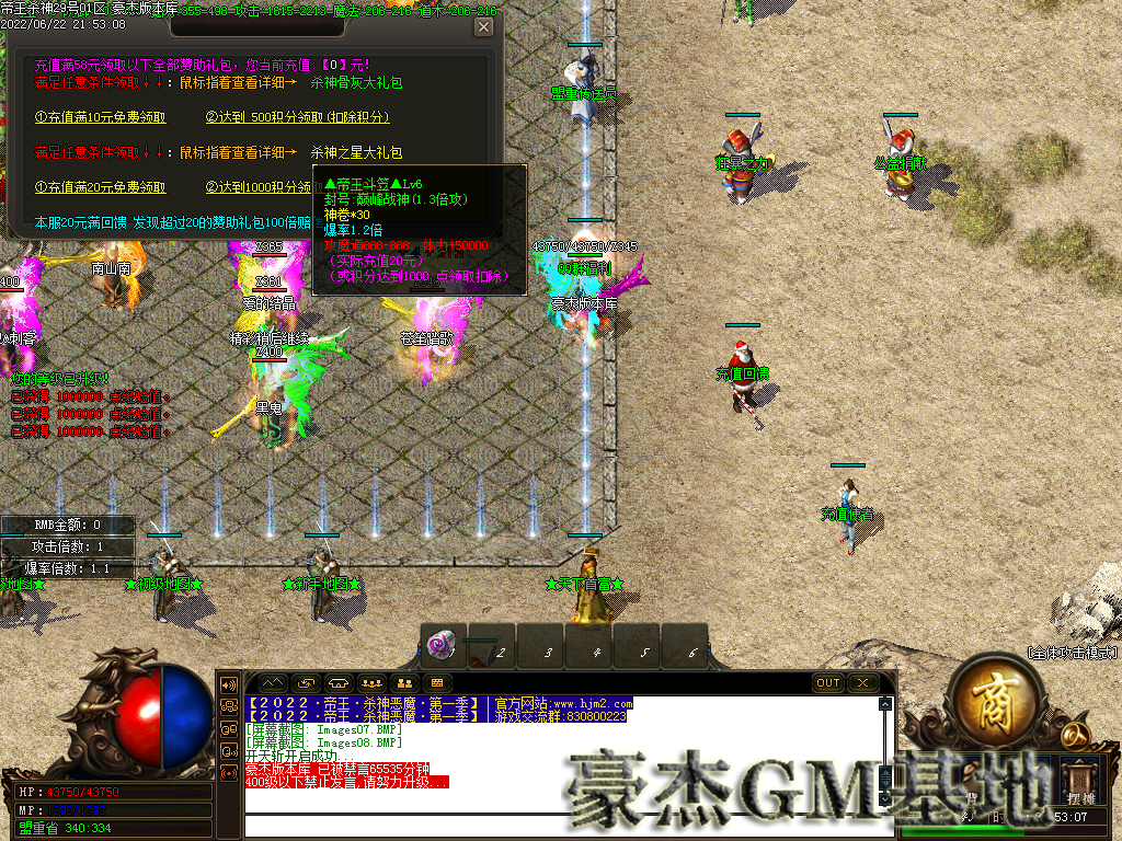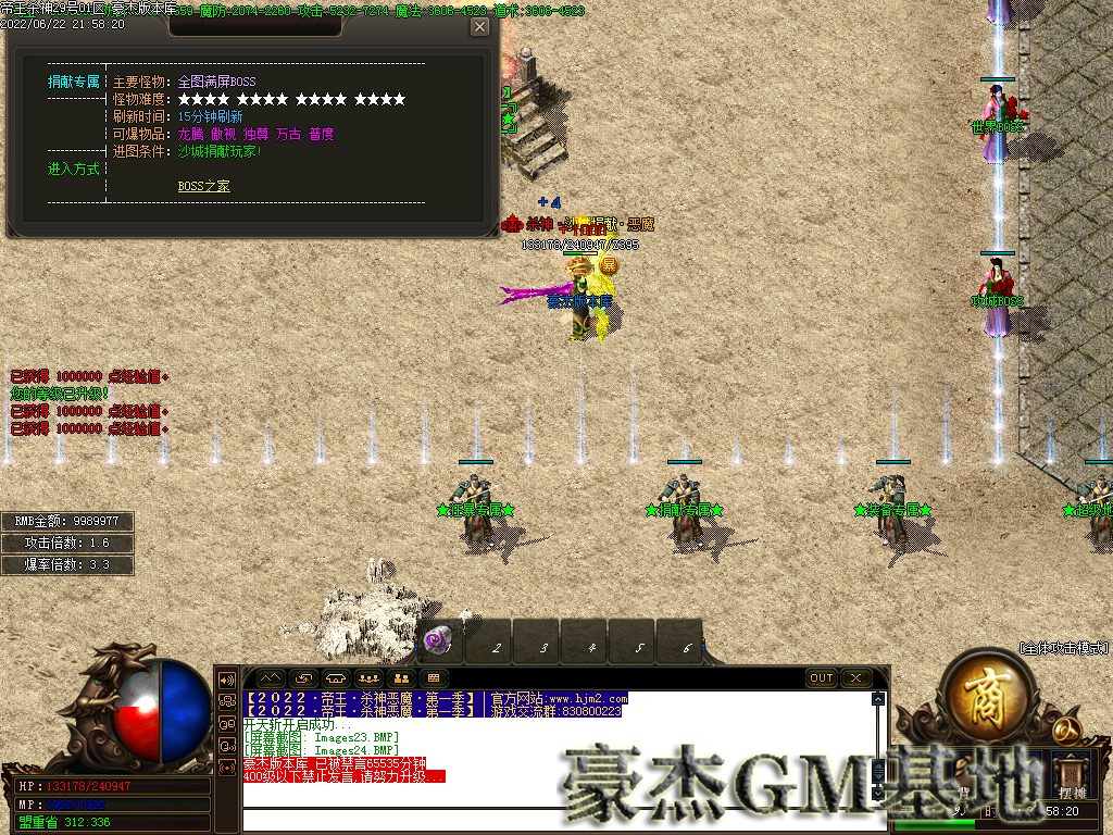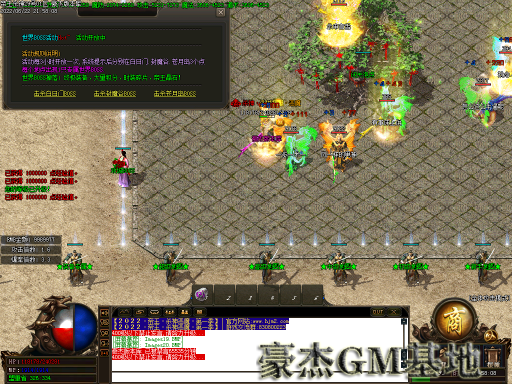 BOSS掉落的【人民币充值卷】可以获得元宝和积分,足够积分领取免费礼包!详情查看“免费礼包”NPC