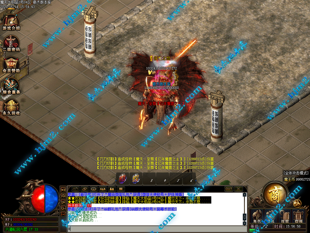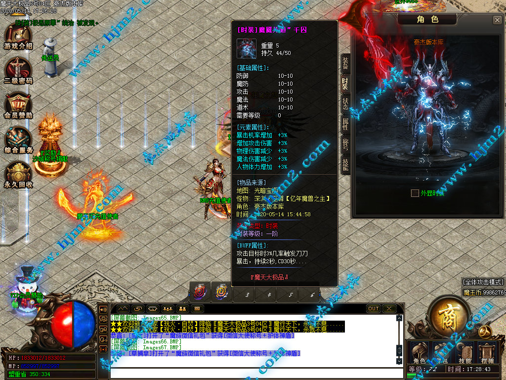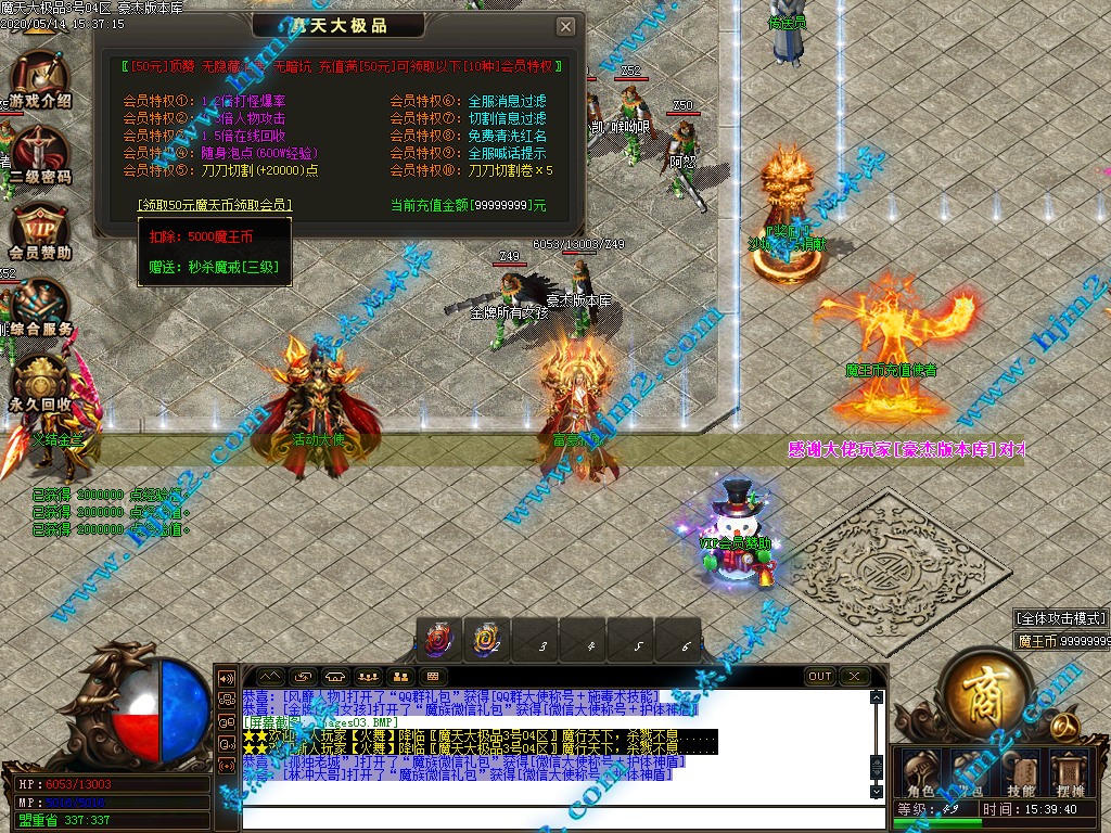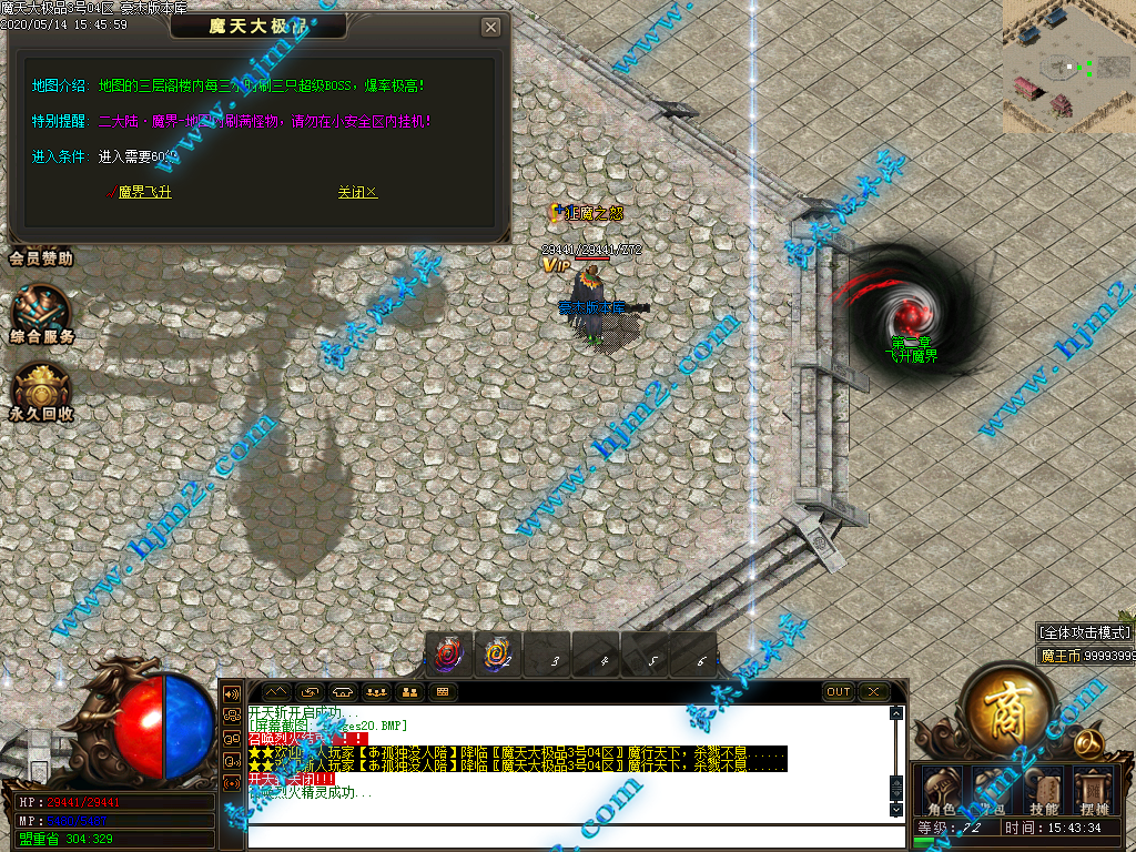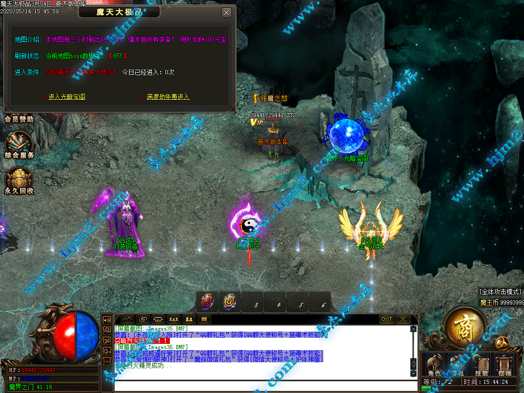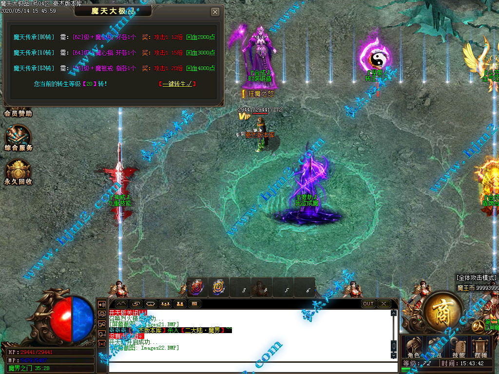 2.会员直接赠送【秒杀魔戒[三级]】进魔天大陆打装备,转生!