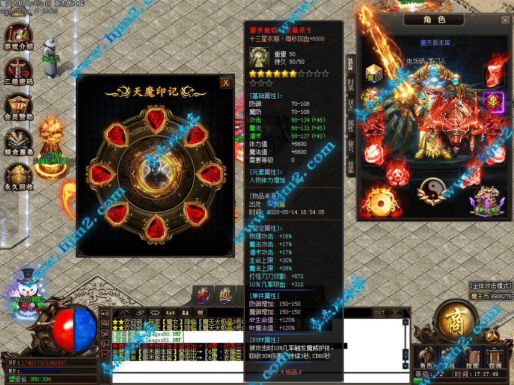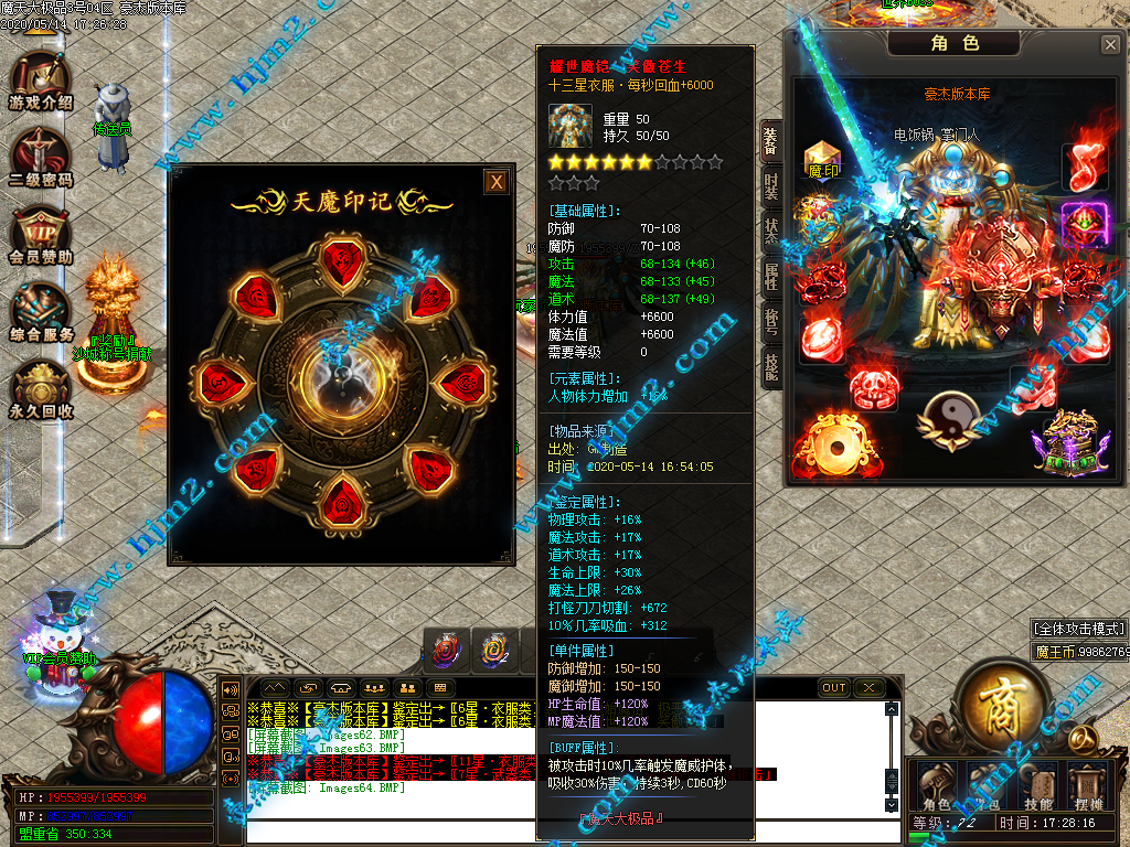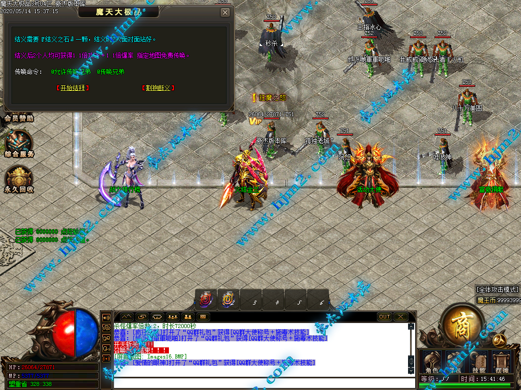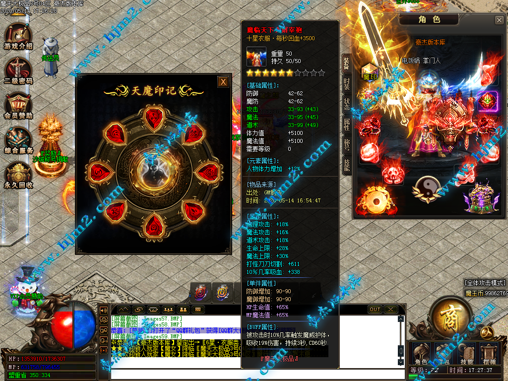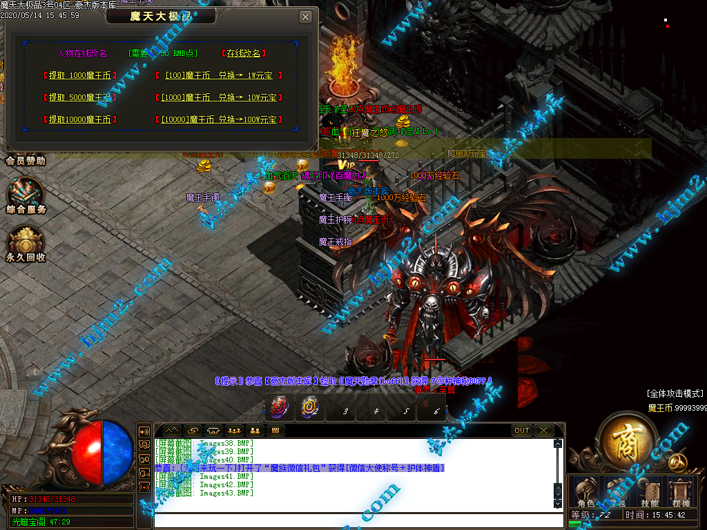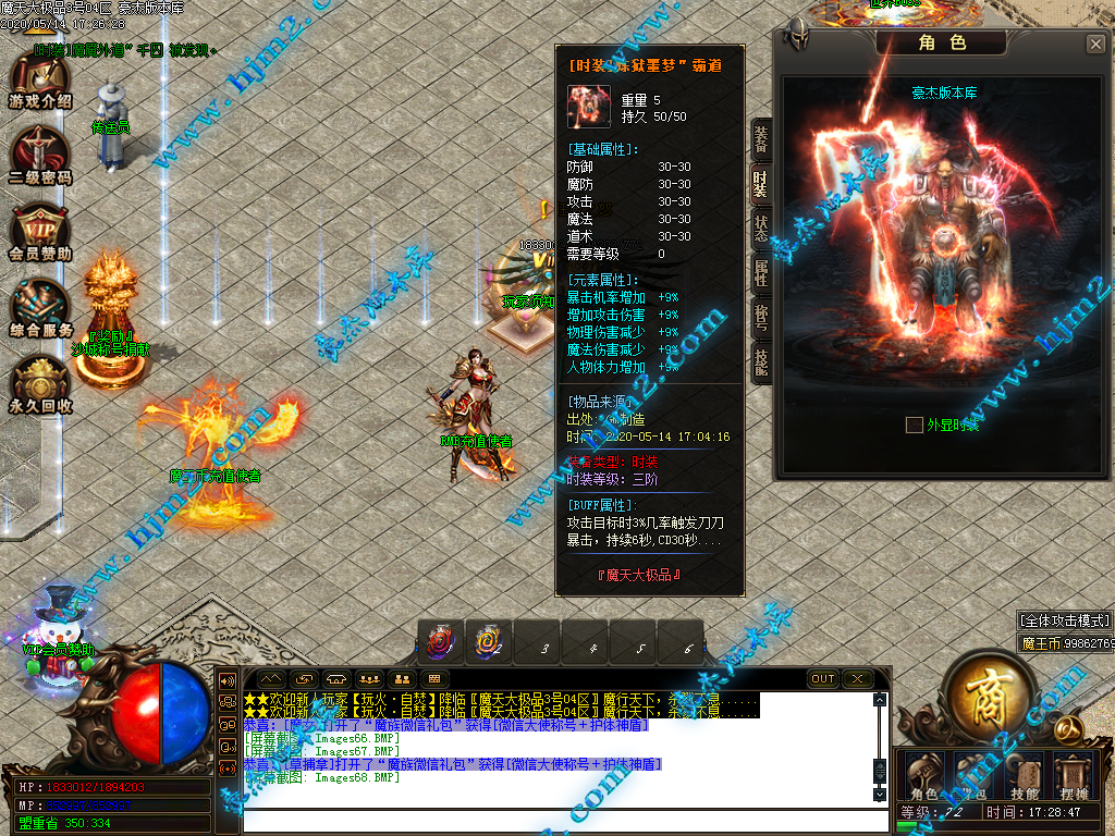 2.会员直接赠送【秒杀魔戒[三级]】进魔天大陆打装备,转生!