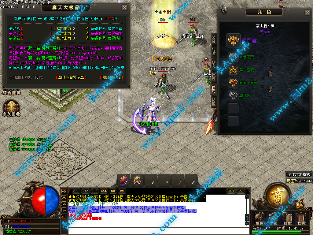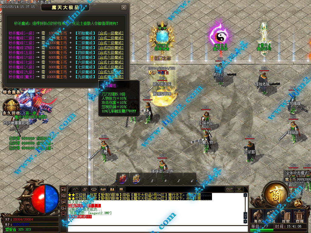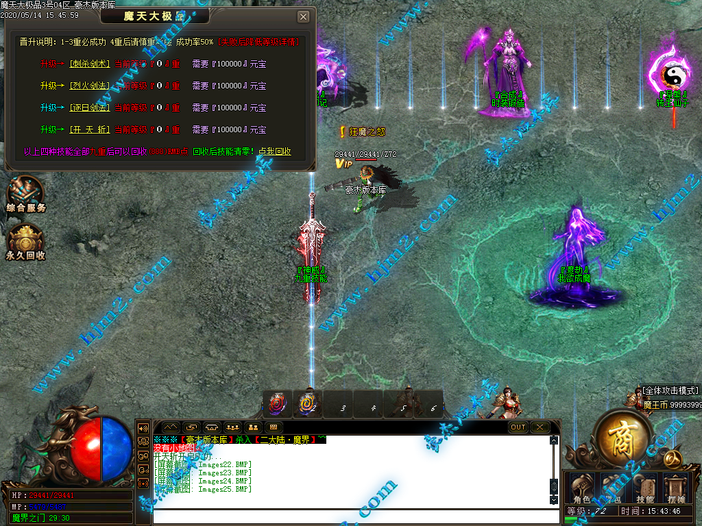 2.慢慢升级秒杀魔戒、称号(+切割+爆率+攻击) 60级进二大陆,小怪爆所有!