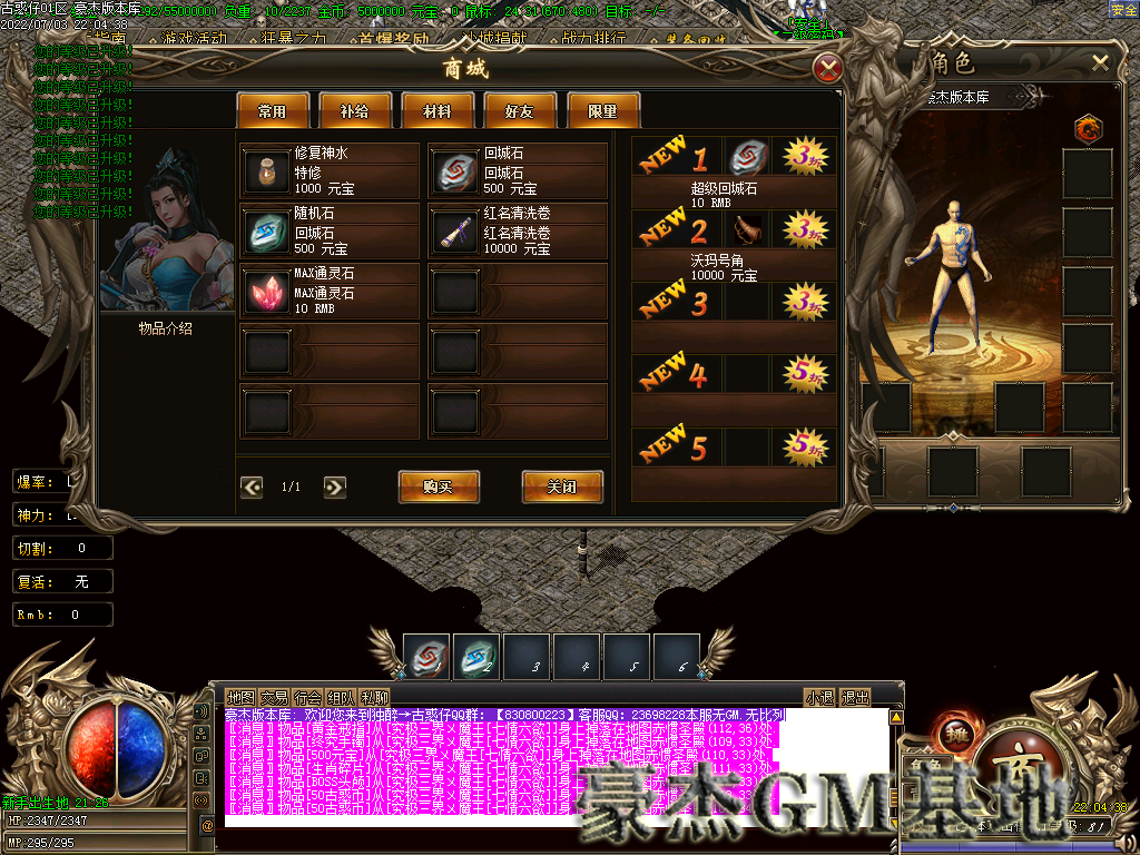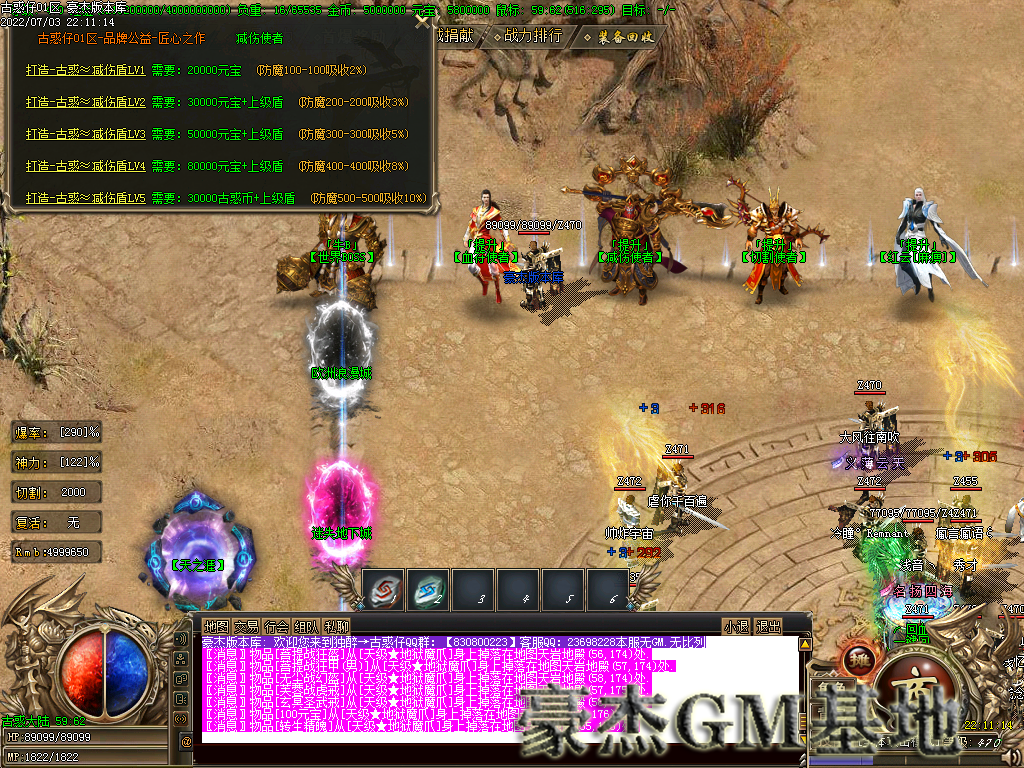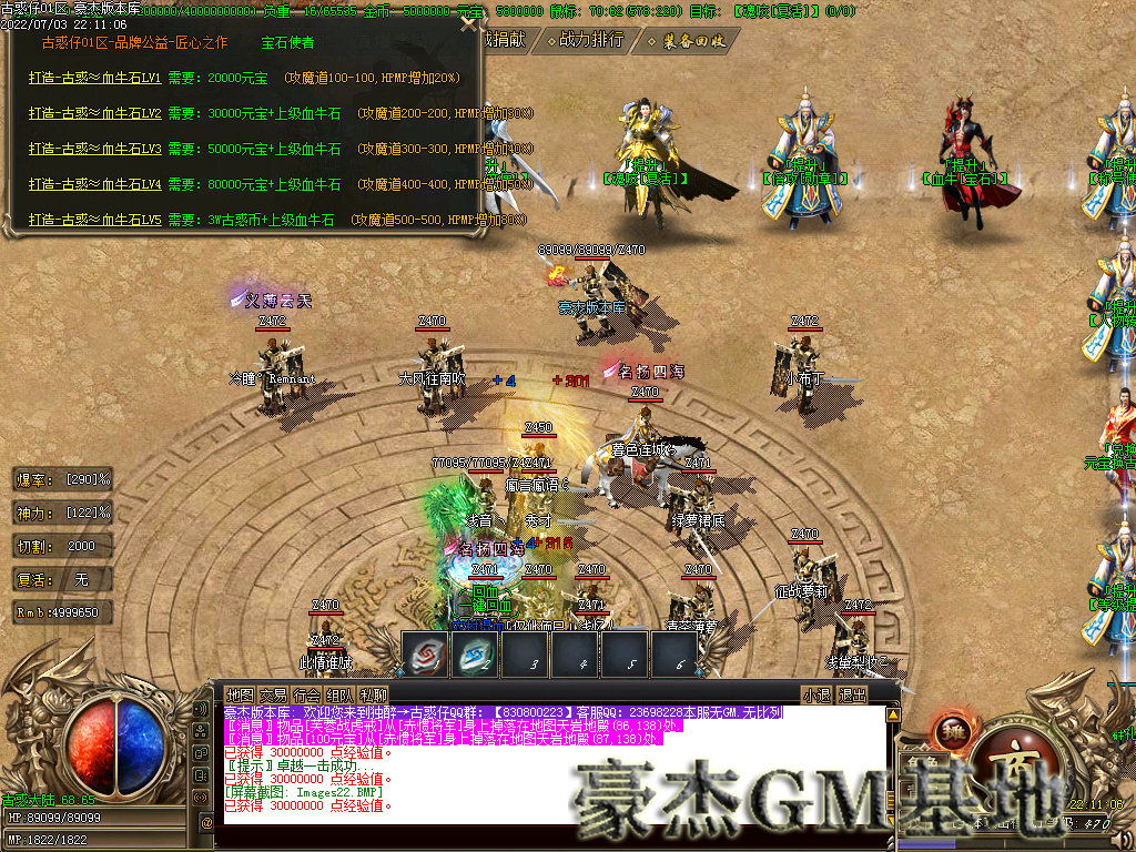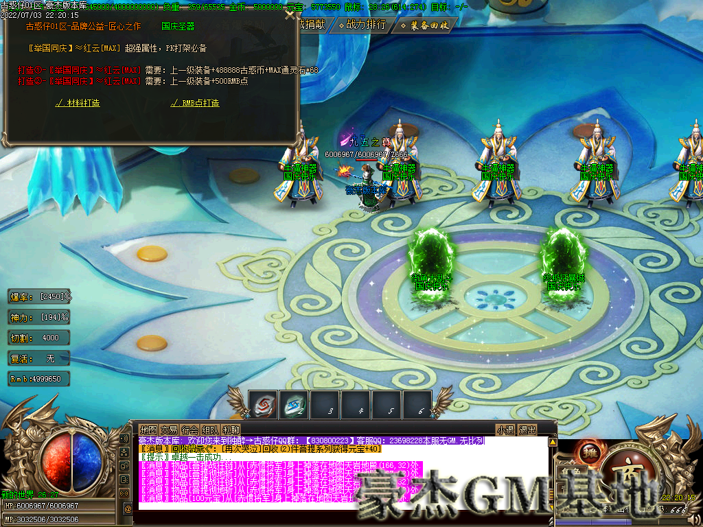 赞助充值后,快速合成各种特殊,不管是打怪还是杀人都稳稳的!(优先升级切割特殊)