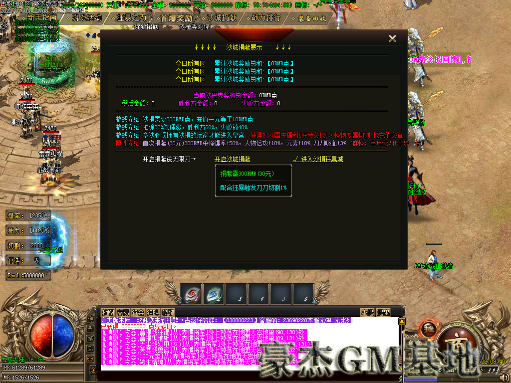 沙捐300(30元)+狂暴50(5元)(捐献加狂暴触发刀刀1%,强烈建议开启)