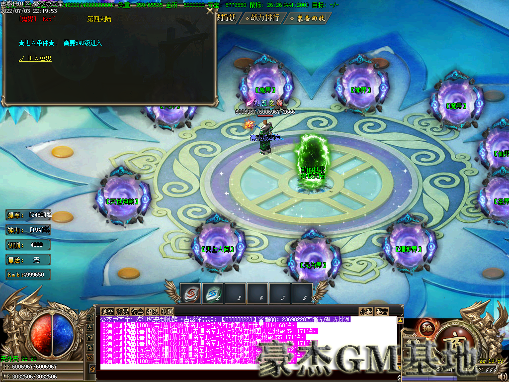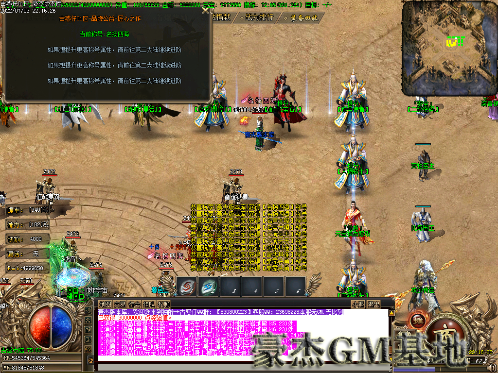 直接送50W元宝去弄称号和等级、快速的让自己下大陆!!!