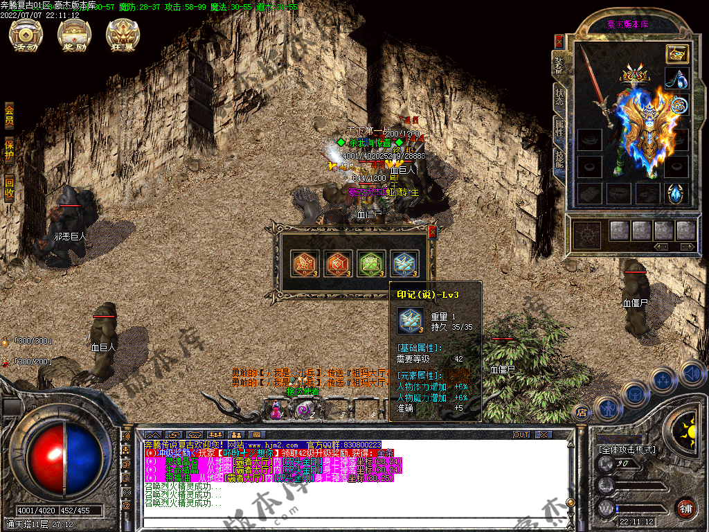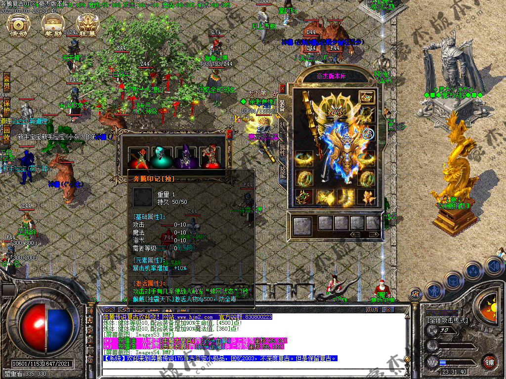 【奔腾复古】:★4:·专属介绍:·本服拥有多种专属神器、特技,材料好爆,合到手软!