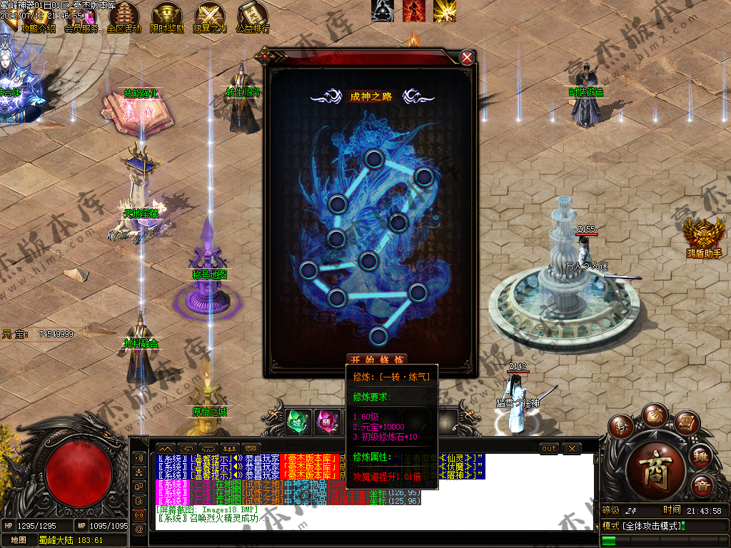 7.转生需要元宝加材料,具体查看转生NPC(本服后面只有转生一条路线,所以转生材料珍贵)