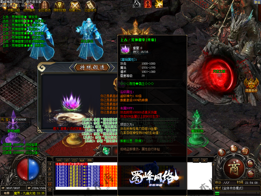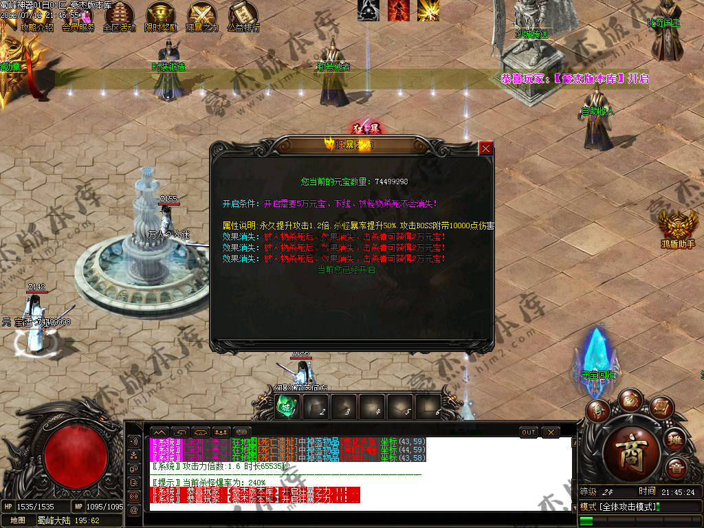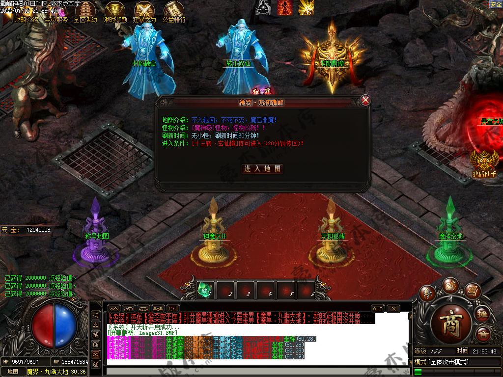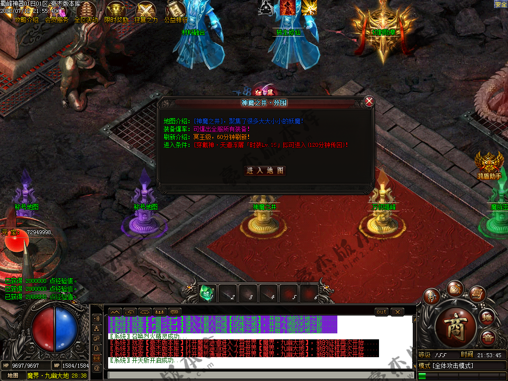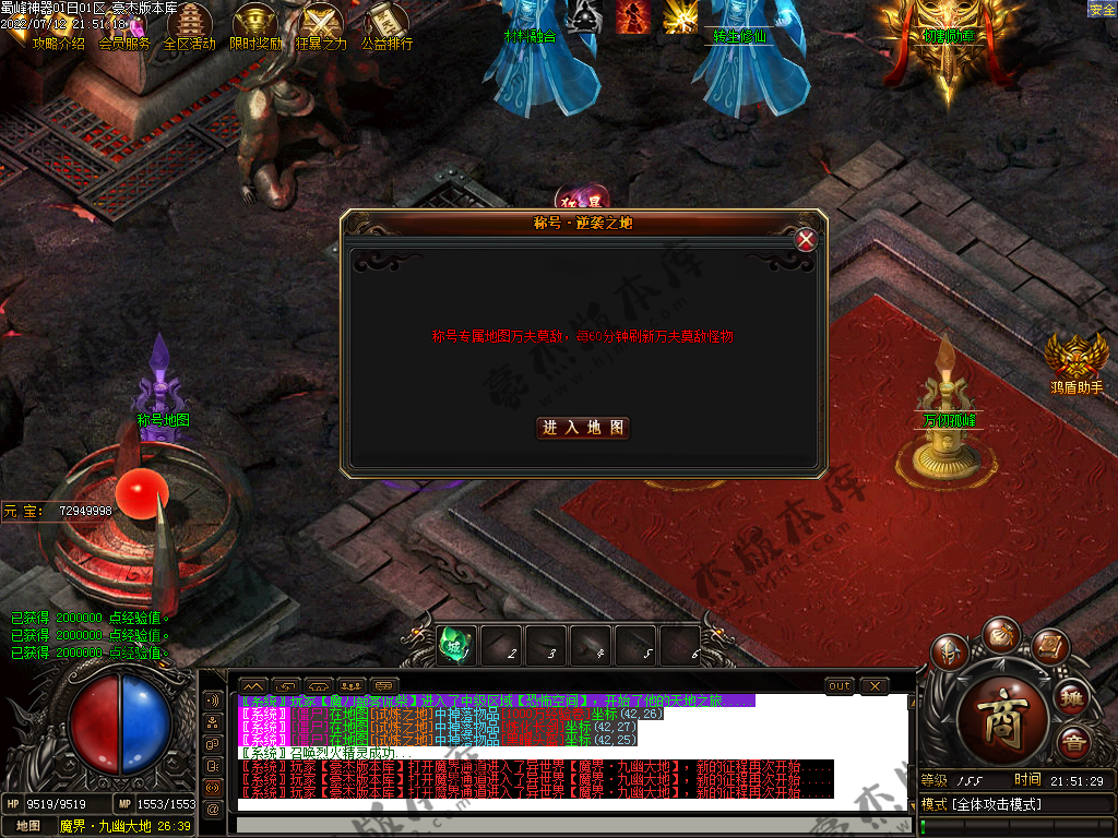 罗里吧嗦的没有意义.总之一句话,本服只要你能进得了地图,就会爆出一切!!!