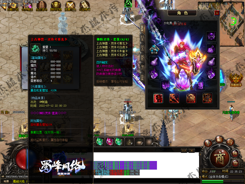 1.本服基础装备35套,转生装备10套,特殊装备15级