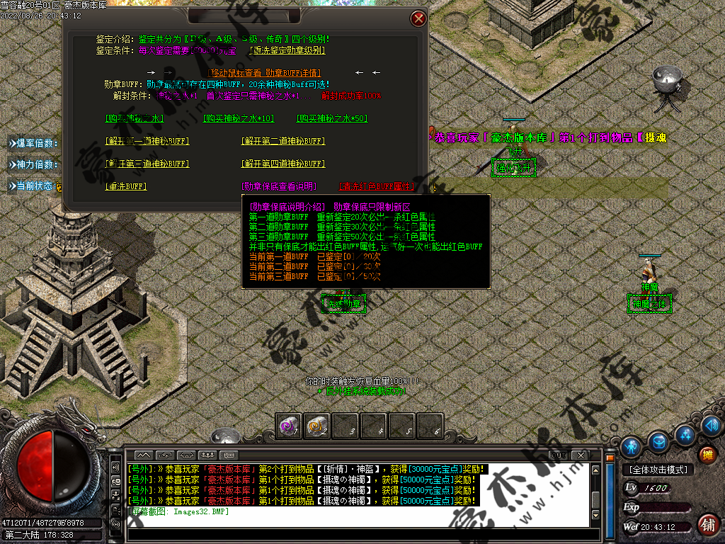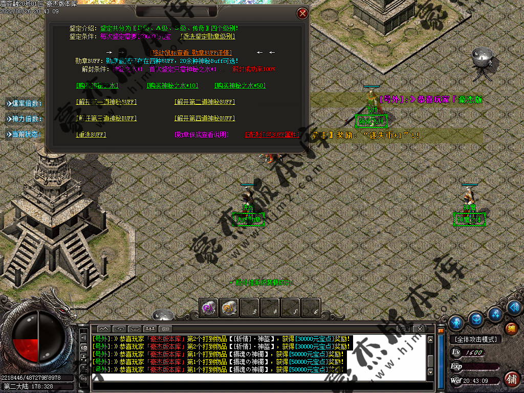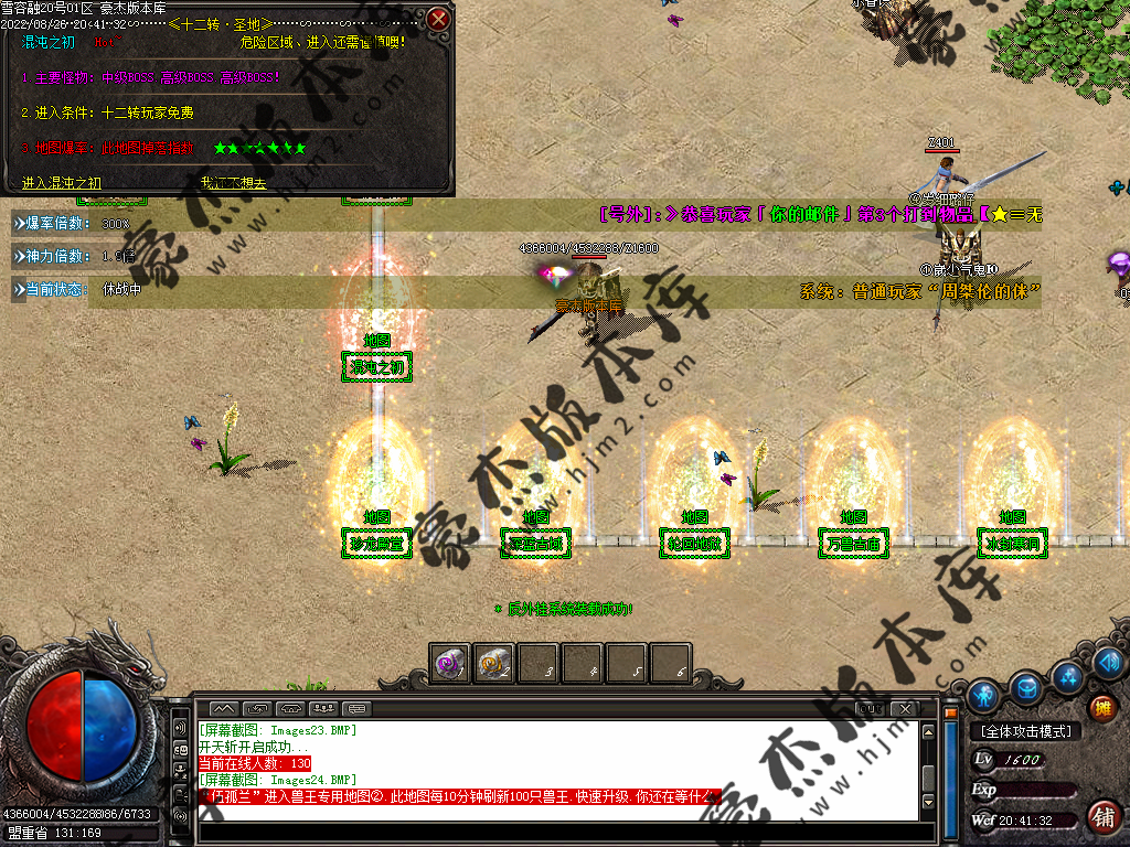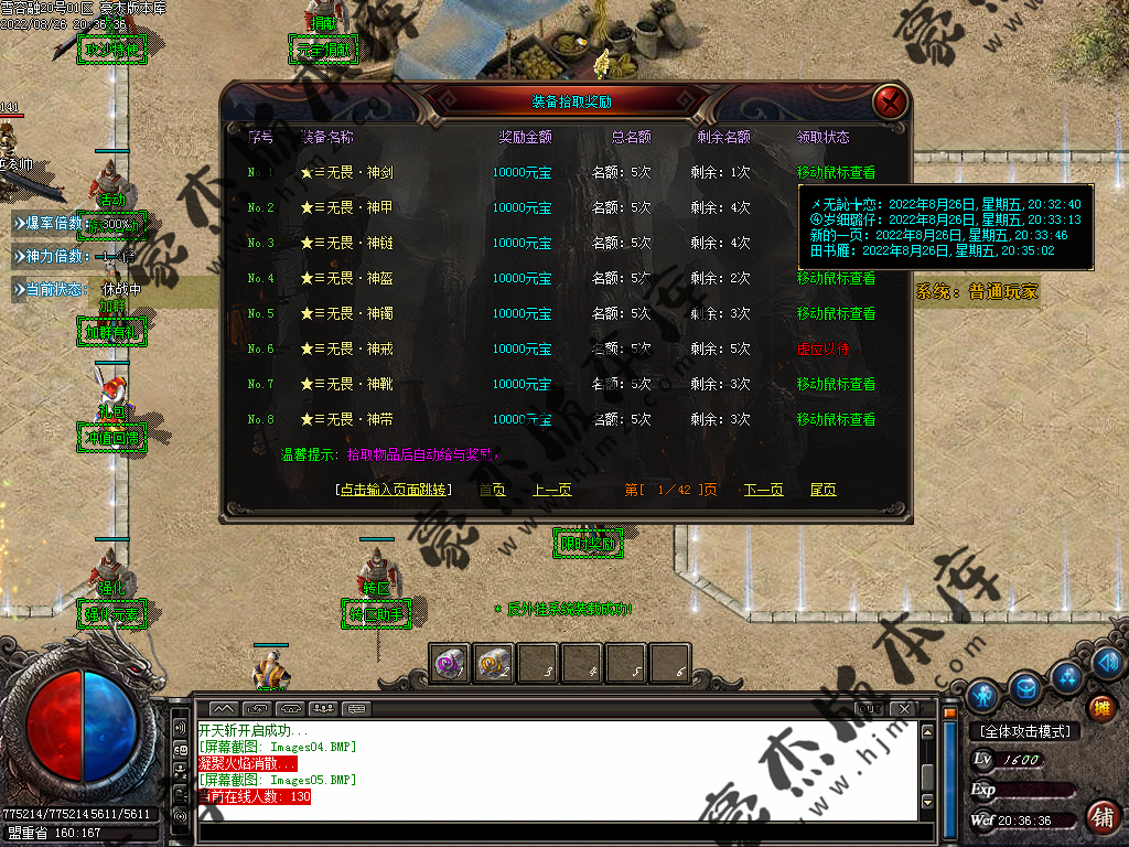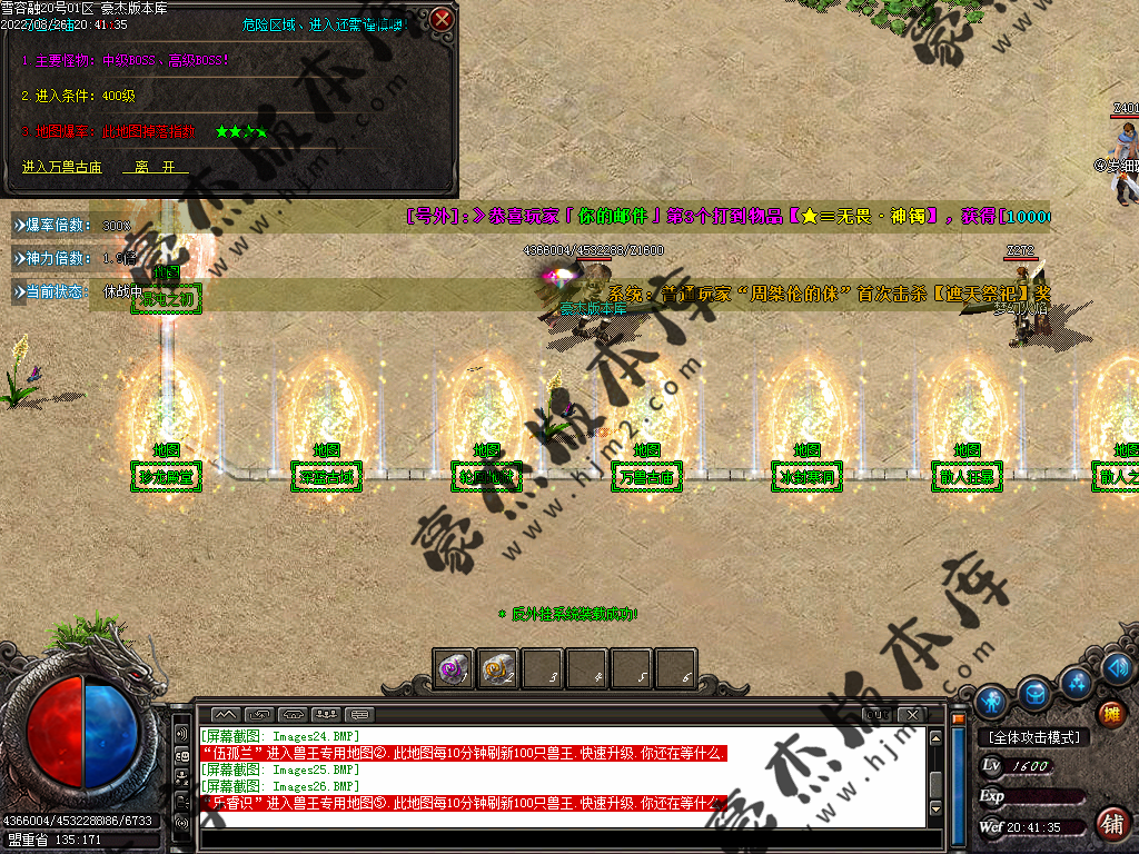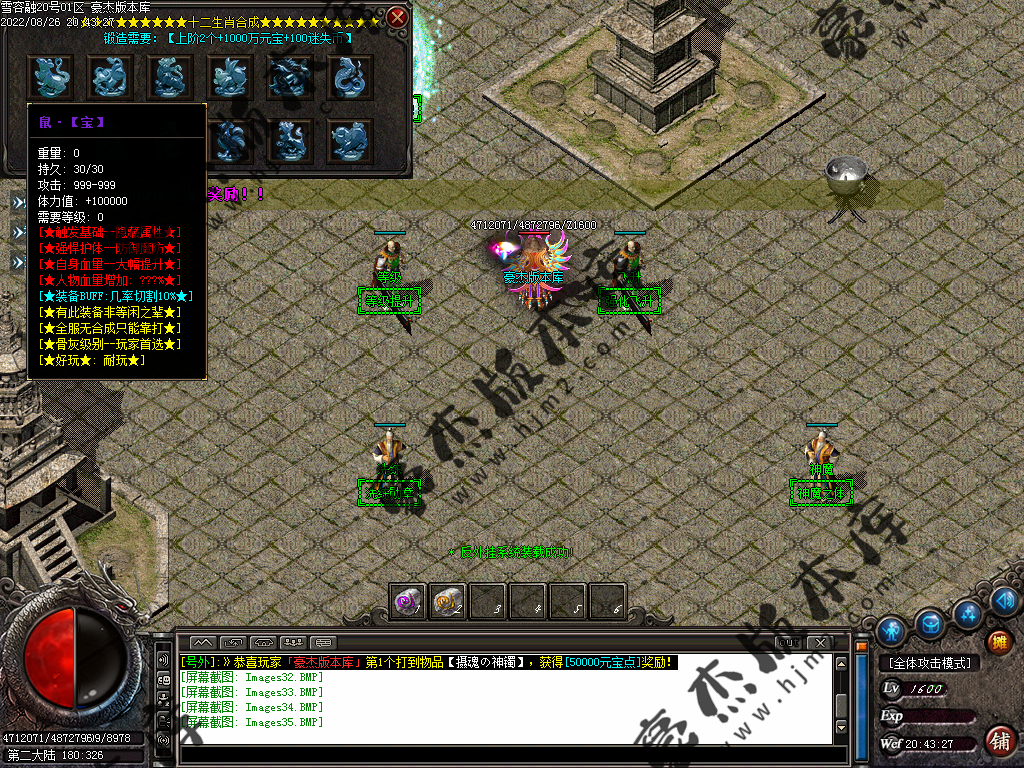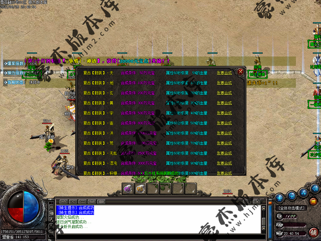 5.散人玩家优先打出一级会员,首爆(元宝) 首杀(迷失币) 迷失币可以兑换全服所有货币
