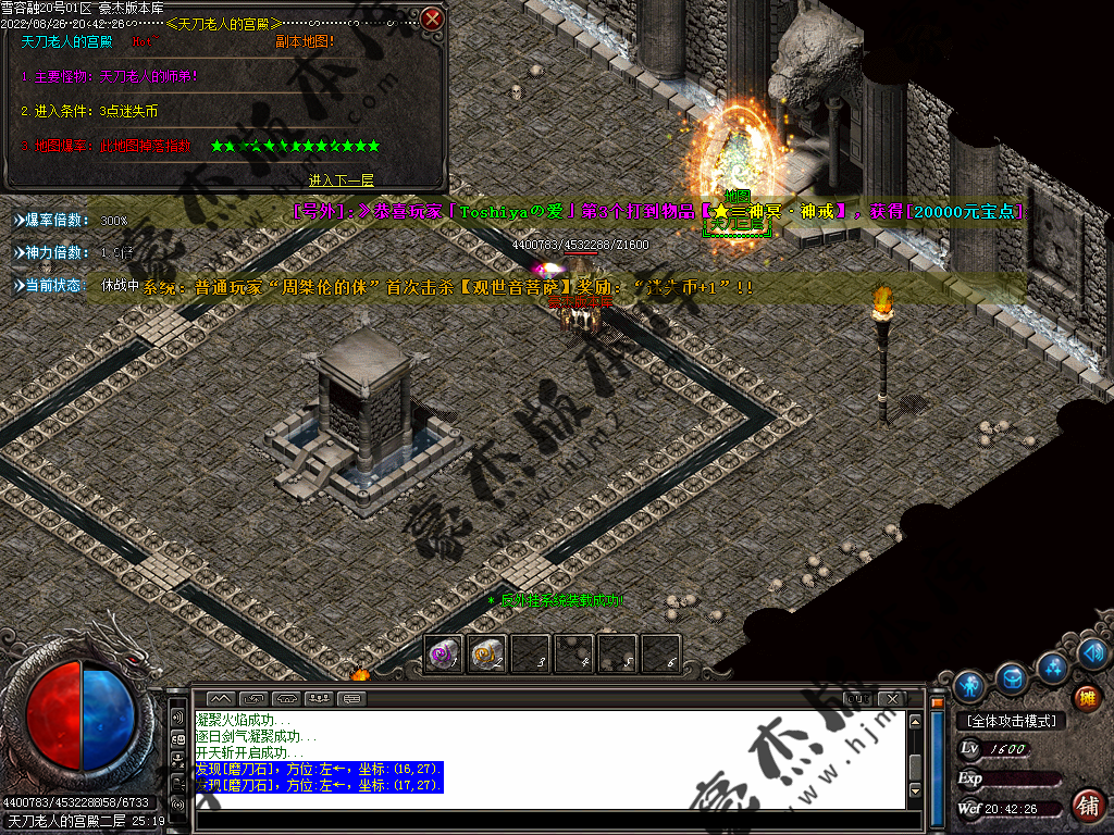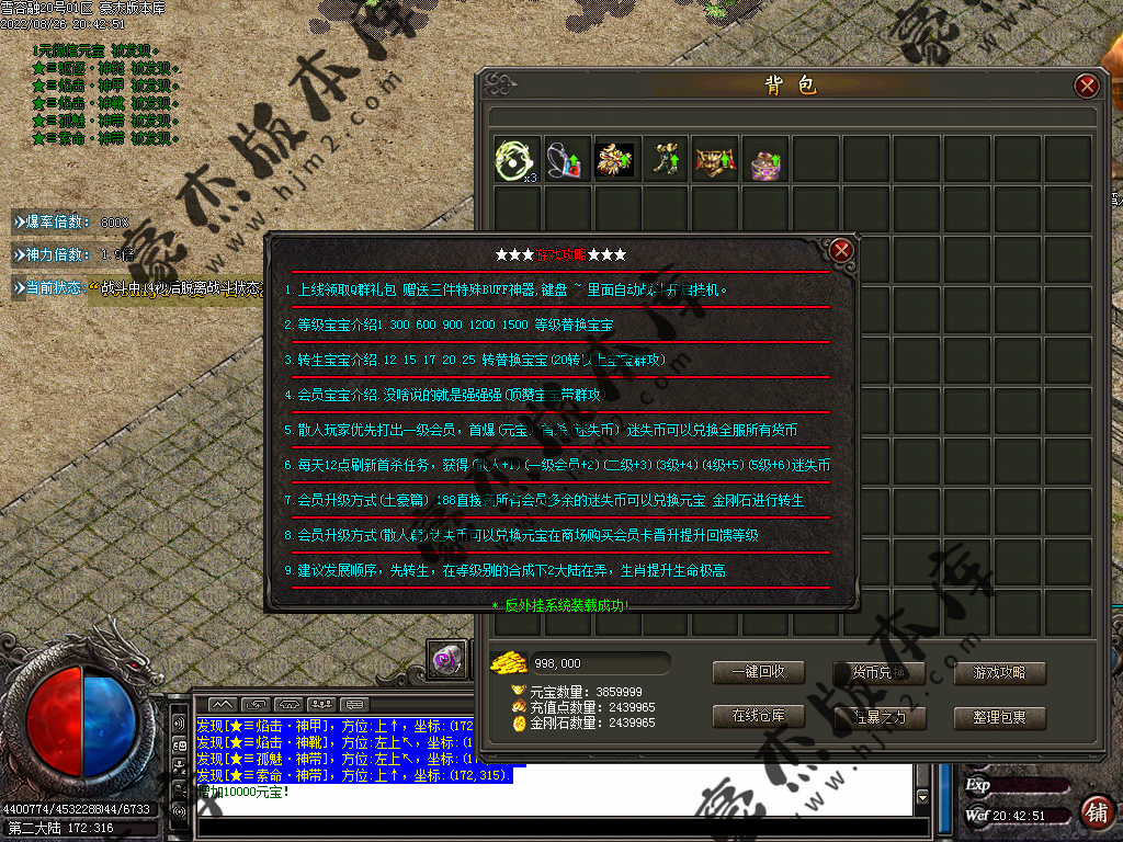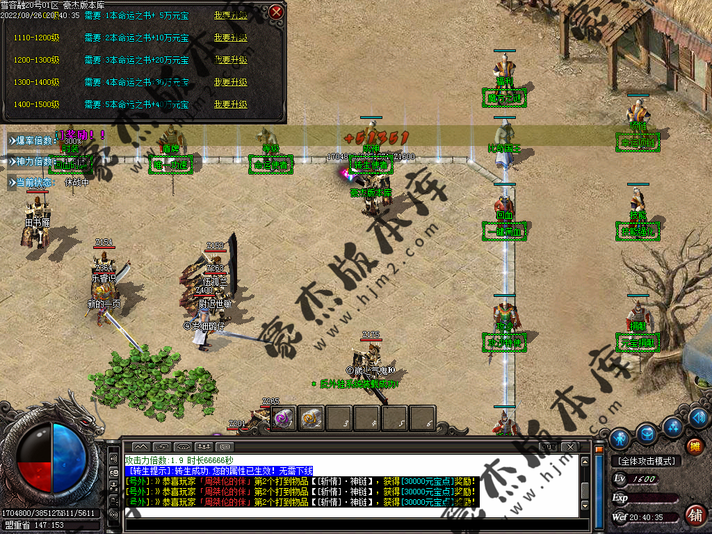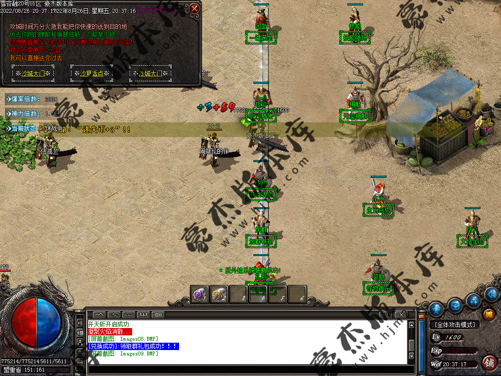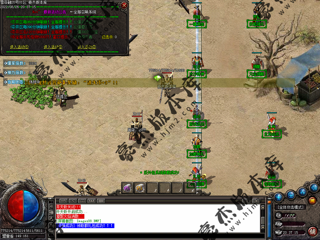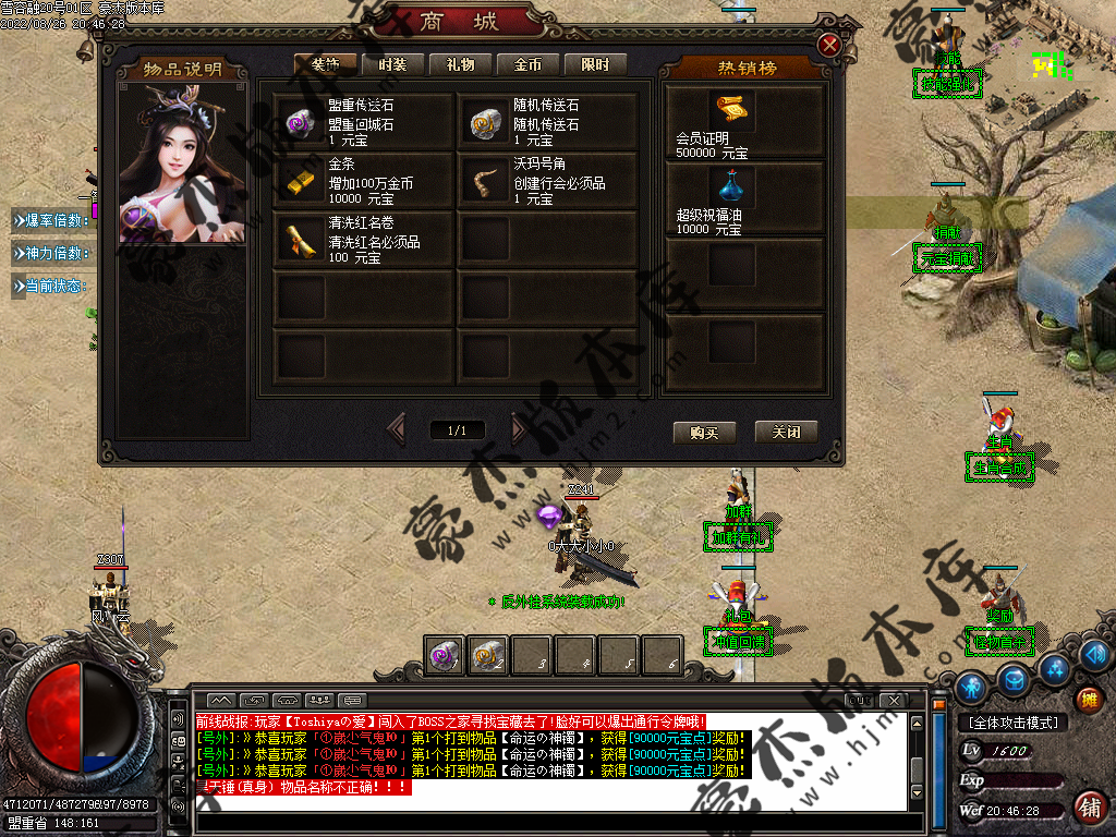 5.散人玩家优先打出一级会员,首爆(元宝) 首杀(迷失币) 迷失币可以兑换全服所有货币