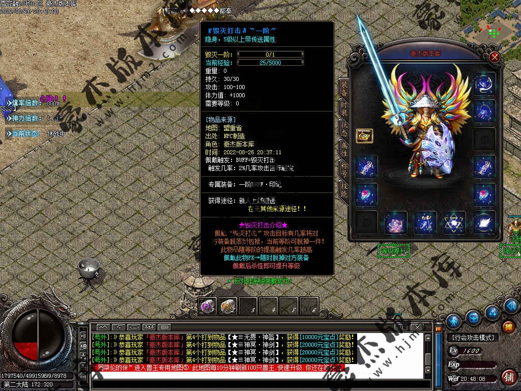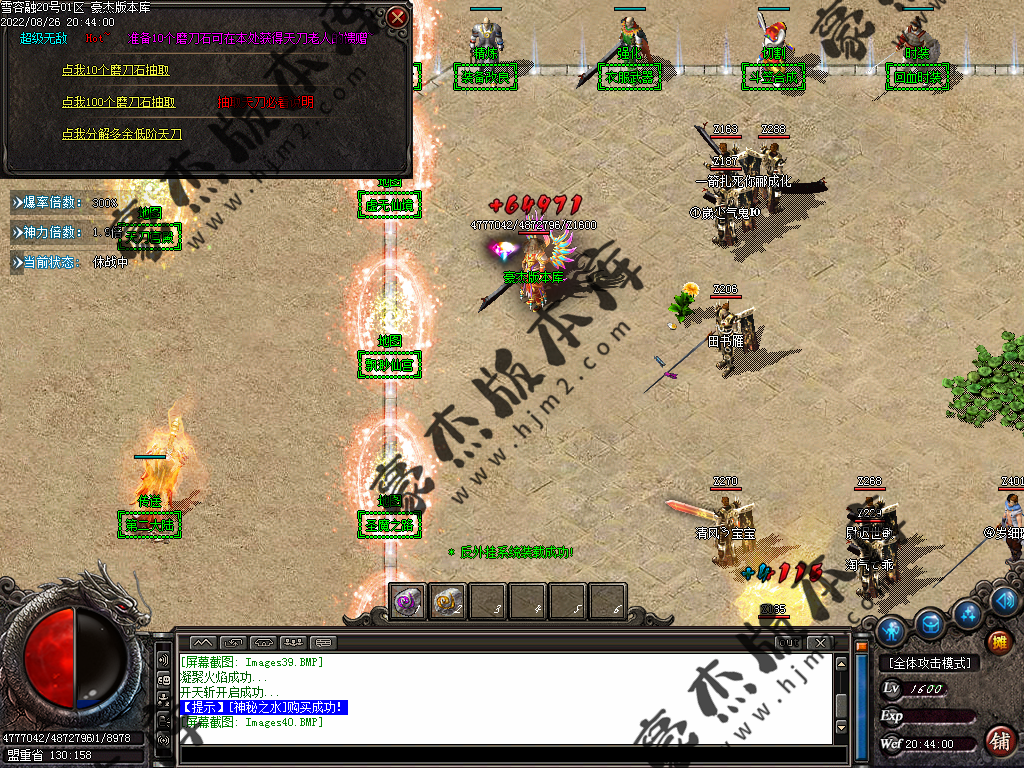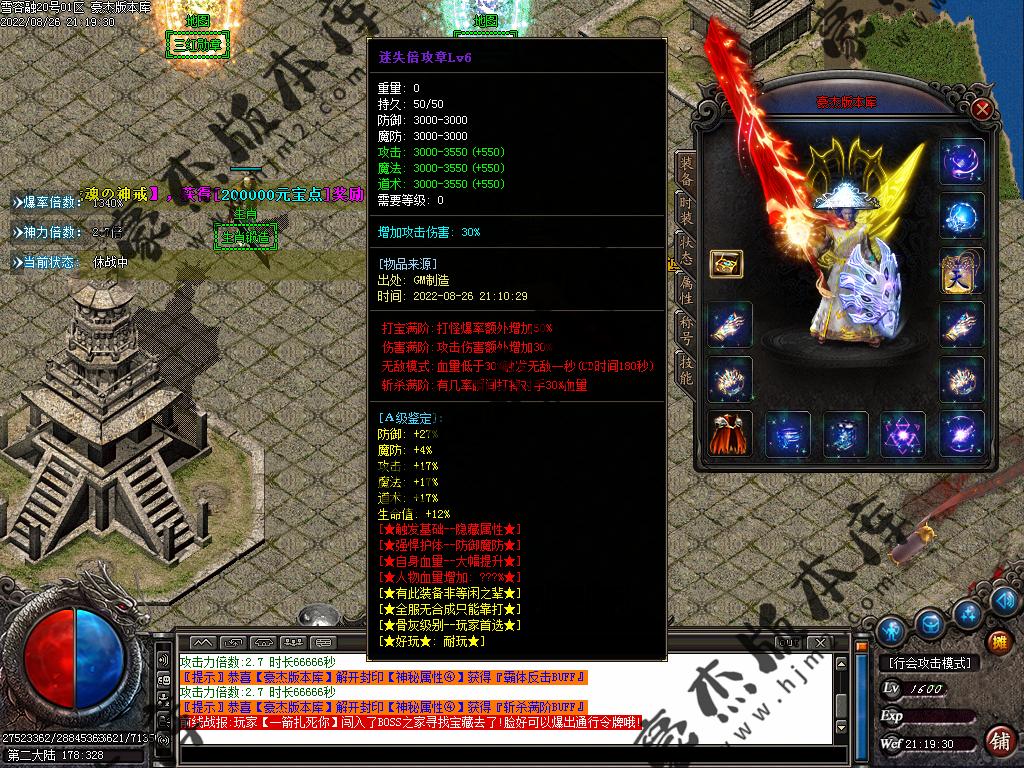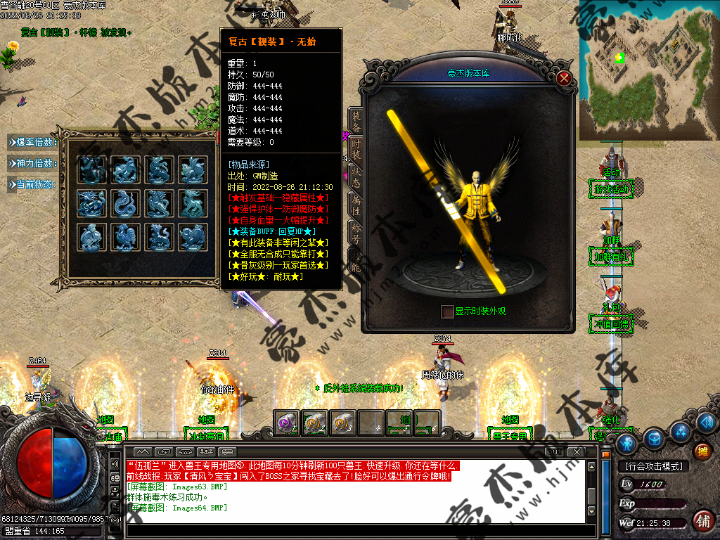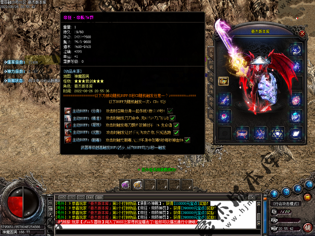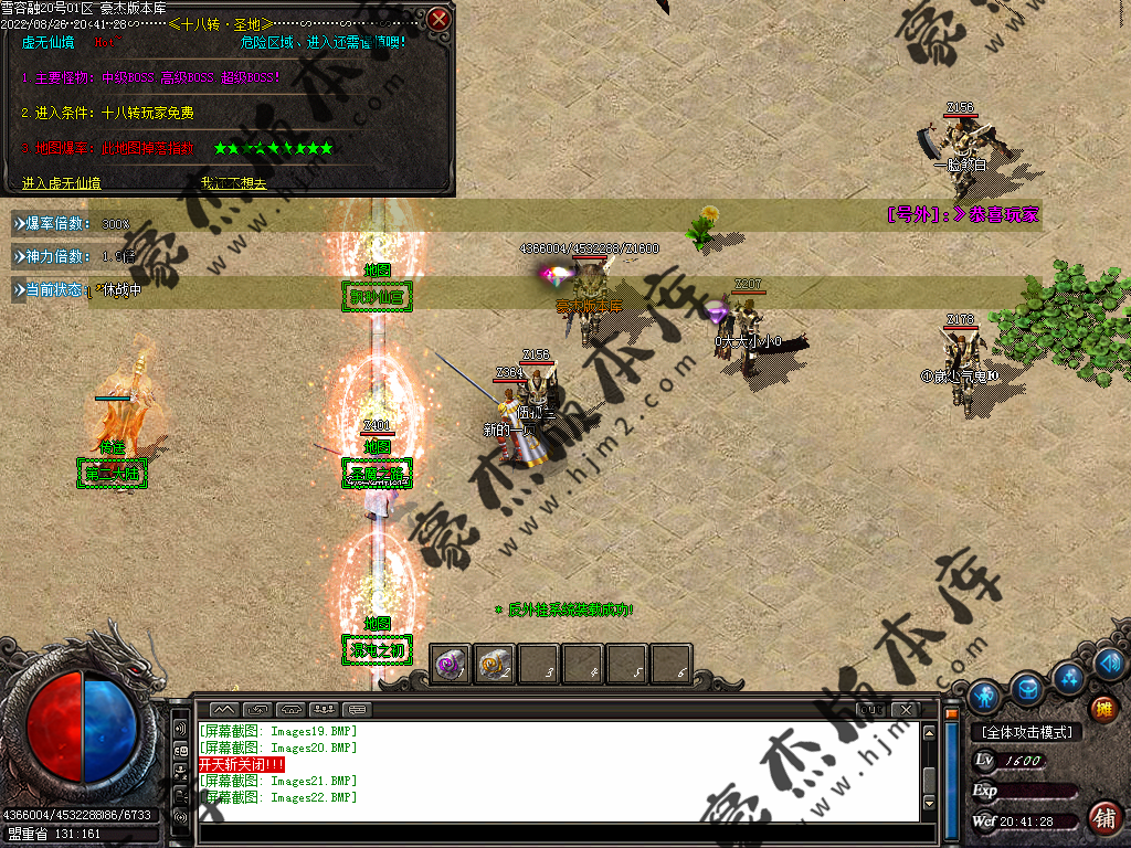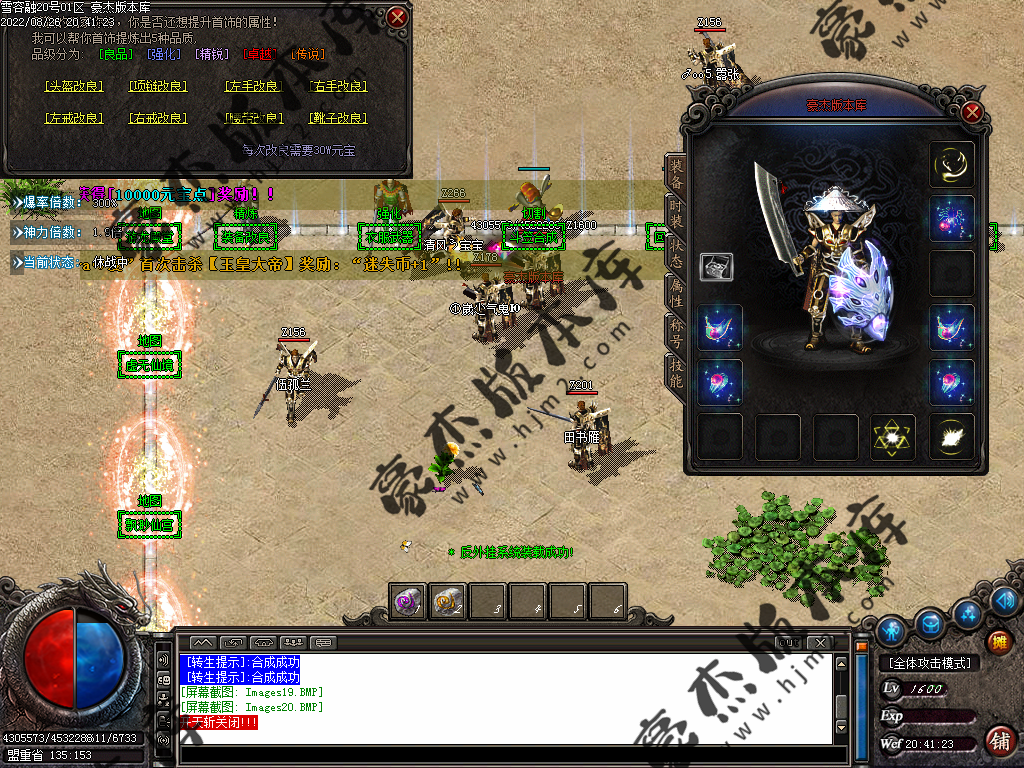 5.散人玩家优先打出一级会员,首爆(元宝) 首杀(迷失币) 迷失币可以兑换全服所有货币