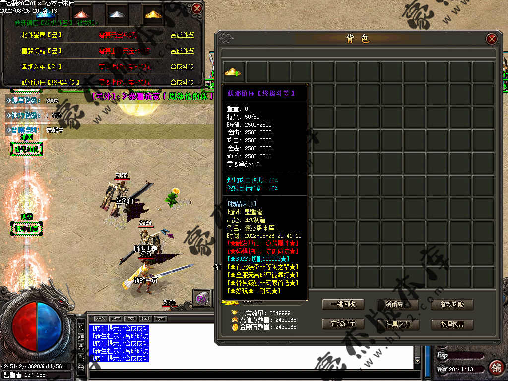 9.建议发展顺序,先转生,在等级别的合成下2大陆在弄,生肖提升生命极高