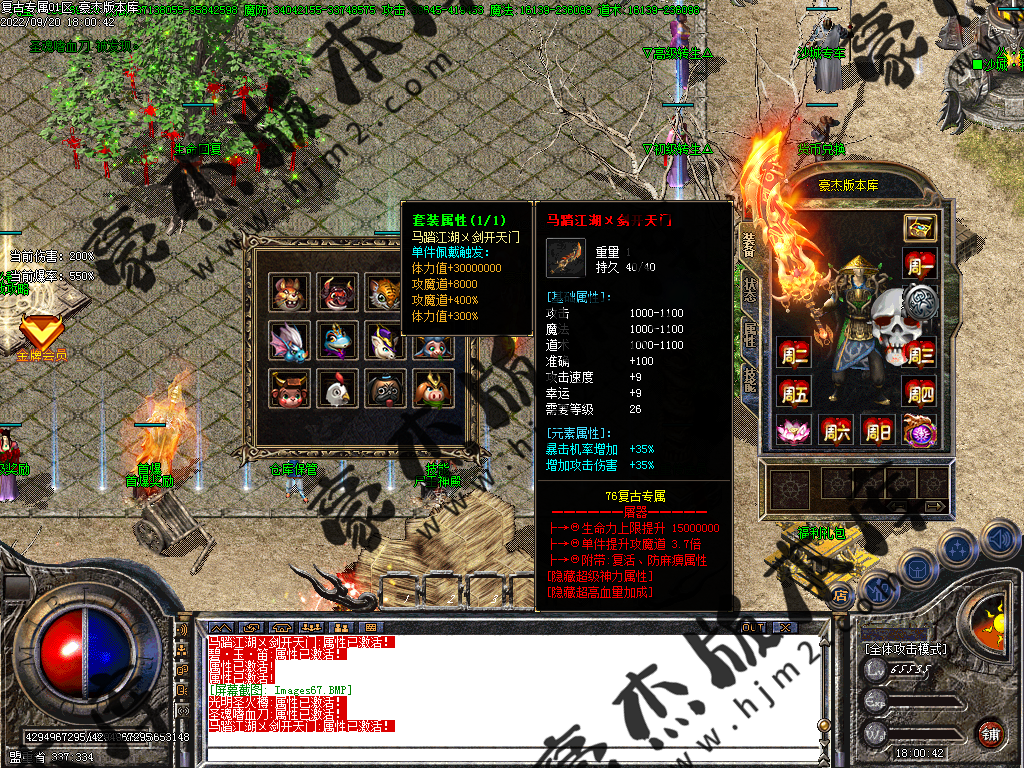 [254]本服战神以上套装,都是剑甲激发攻击倍数,首饰6件激发HP上限,套装属性非常强大!