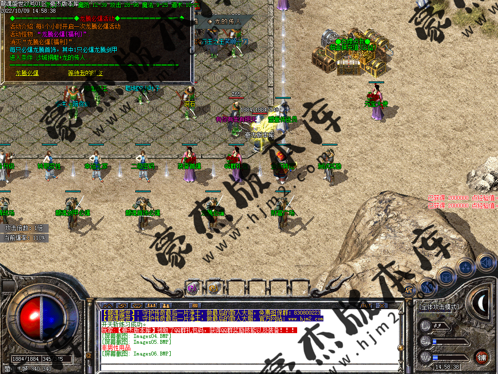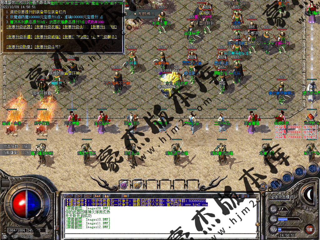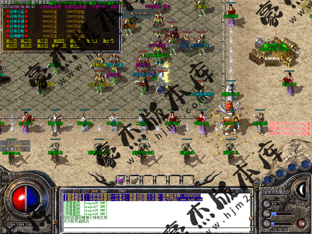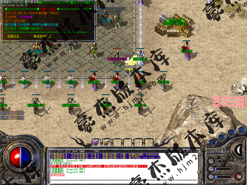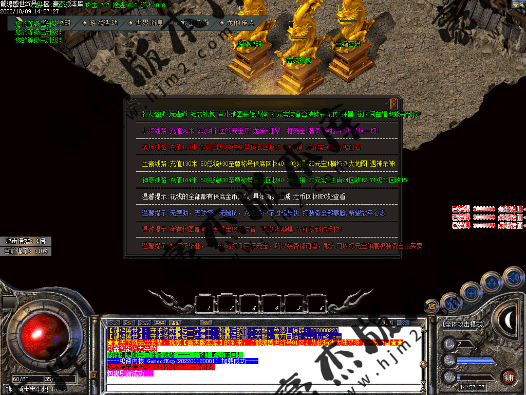 或者回到冰城和古墓去打那些前期不能圣言的怪,等级达到要求就可以按等级要求进入相应的等级地图。或者直接进入狂暴地图和时装地图用流星火雨群怪。本服是小怪服,小怪爆一切