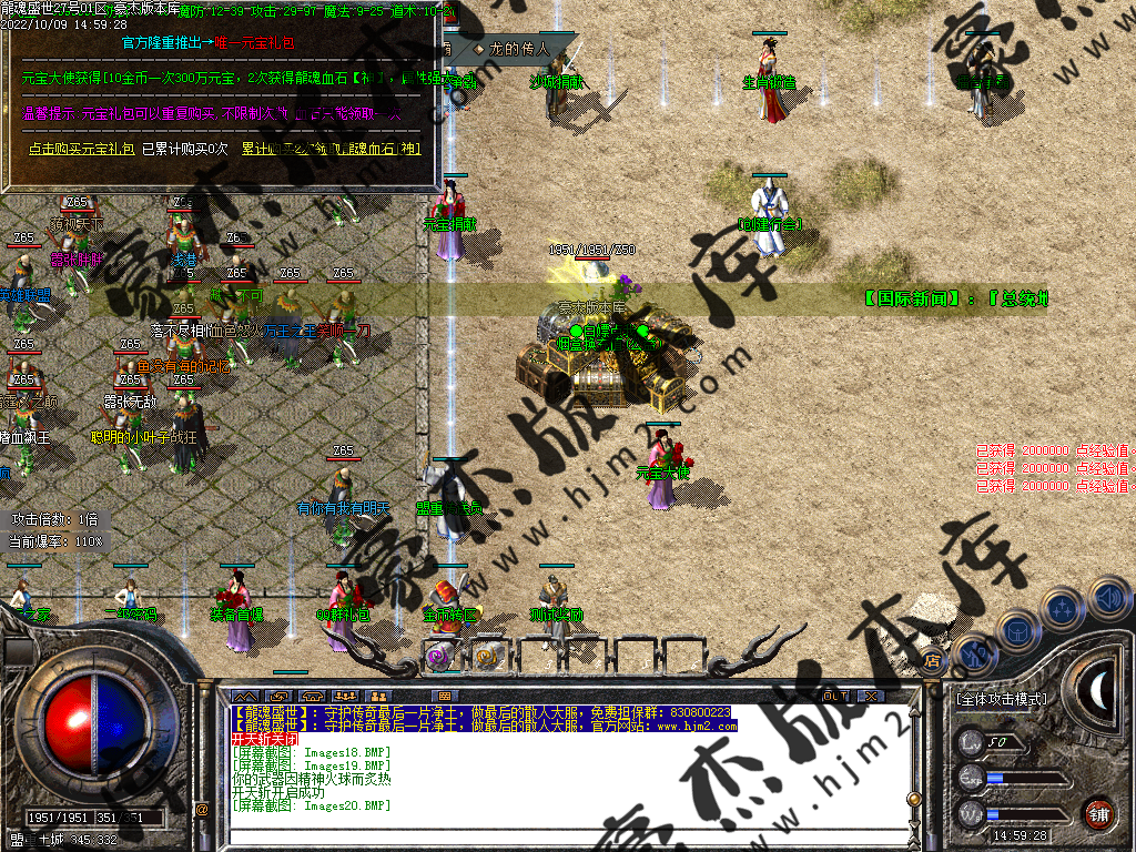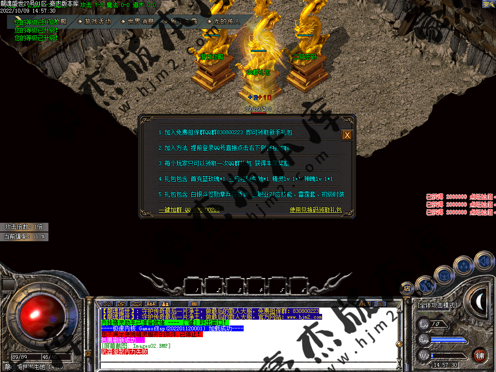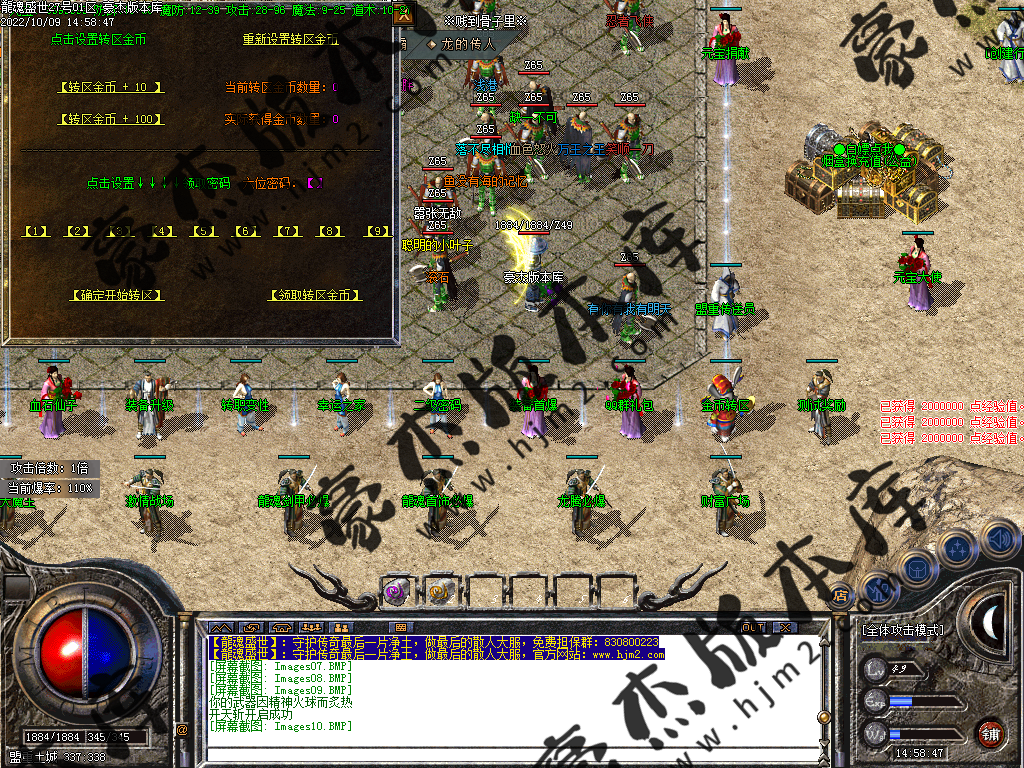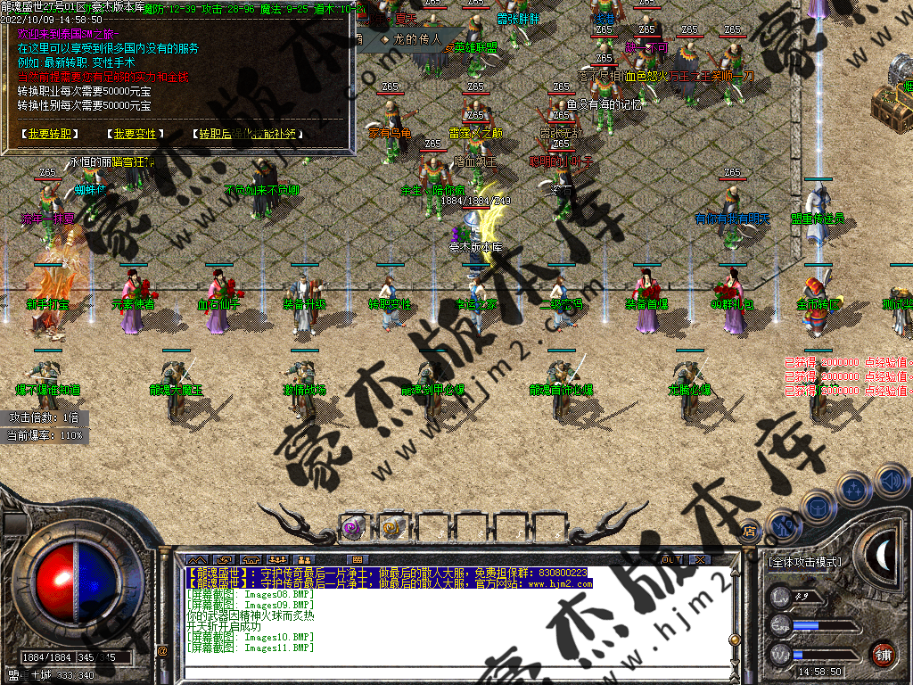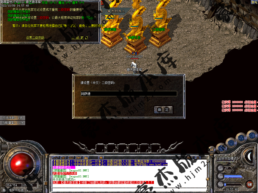 或者回到冰城和古墓去打那些前期不能圣言的怪,等级达到要求就可以按等级要求进入相应的等级地图。或者直接进入狂暴地图和时装地图用流星火雨群怪。本服是小怪服,小怪爆一切