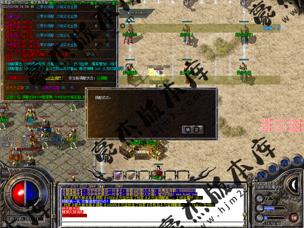 职业介绍:三职业平衡版本。前期建议玩法师,上线领取沙城捐献自动捡物