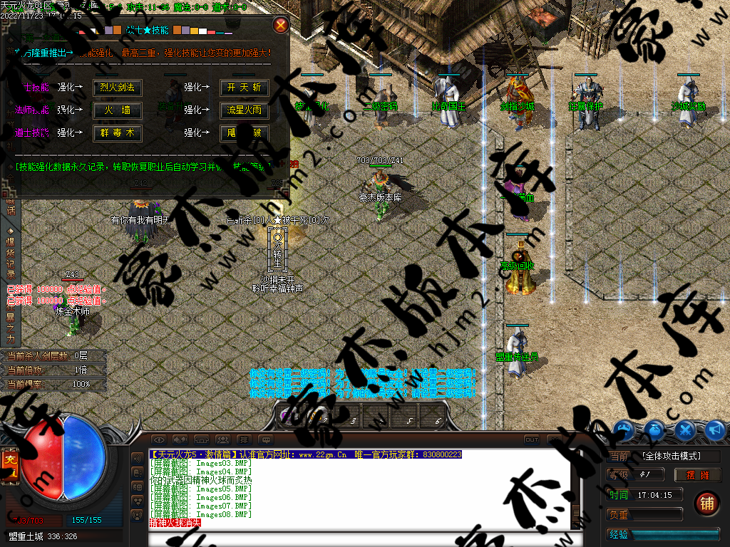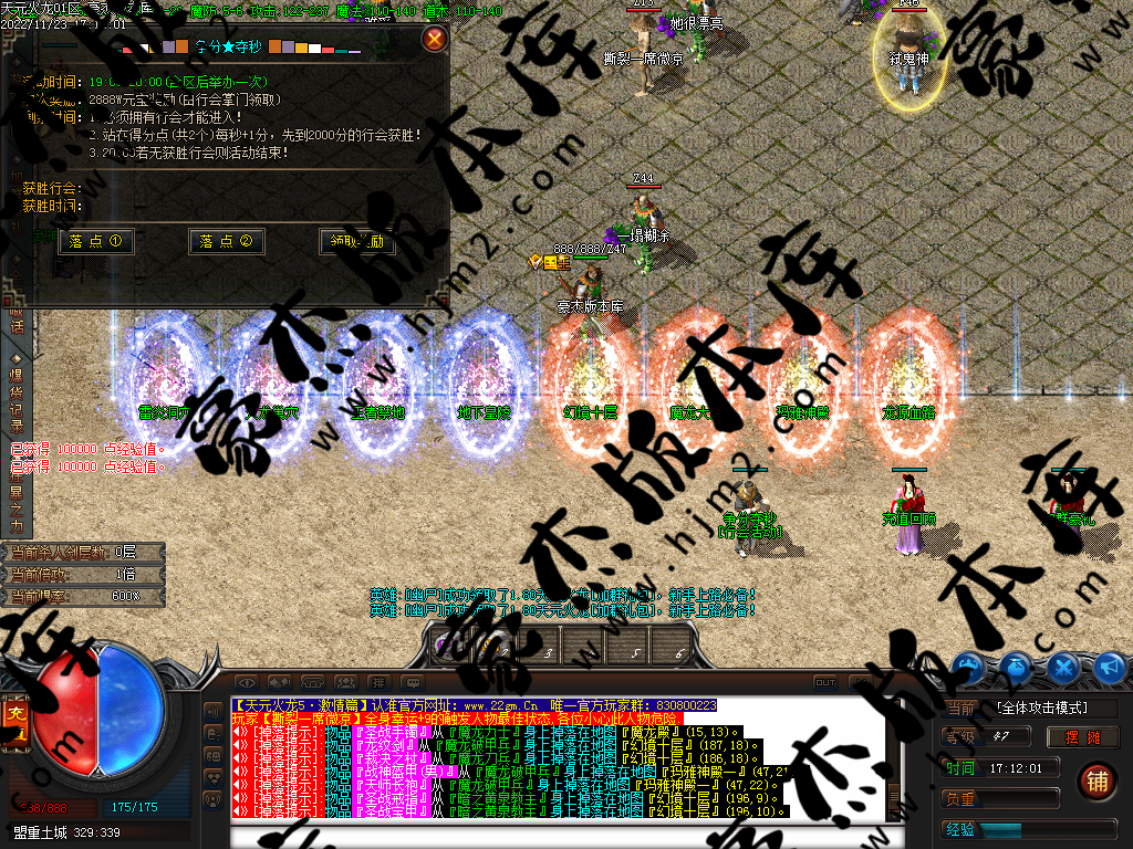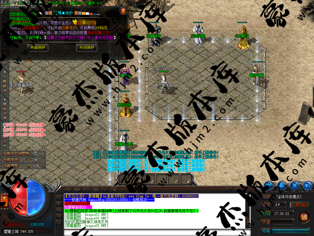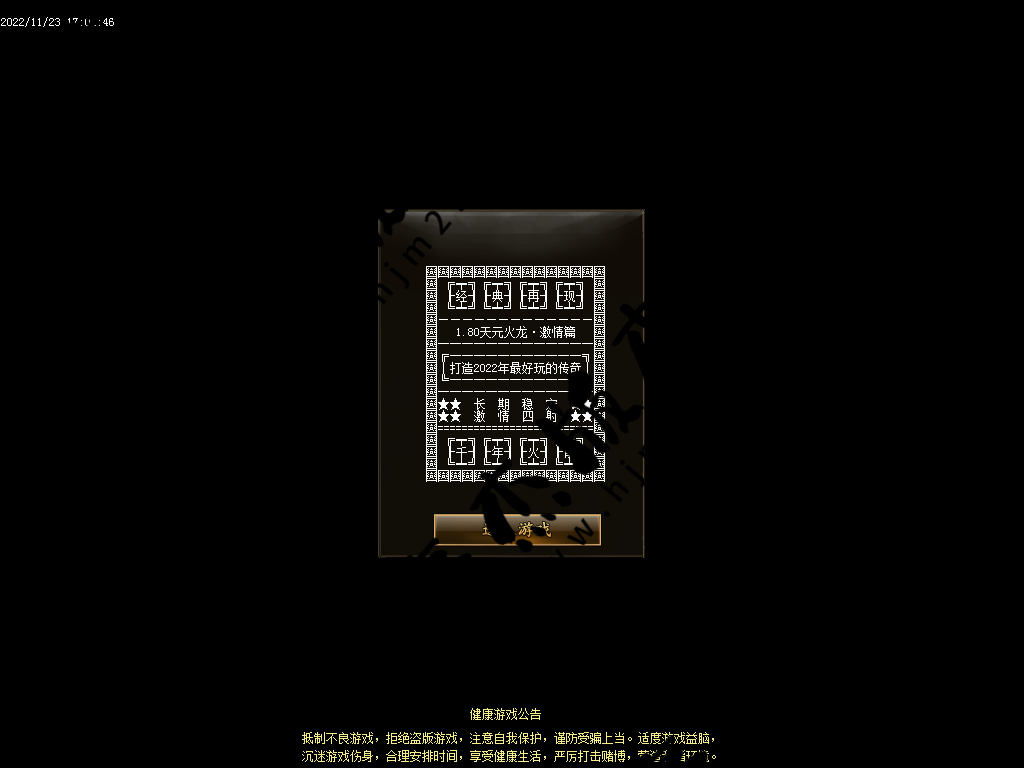 开区:全体重金广告,每天开服六个新区。 <测试区提前一个小时开放