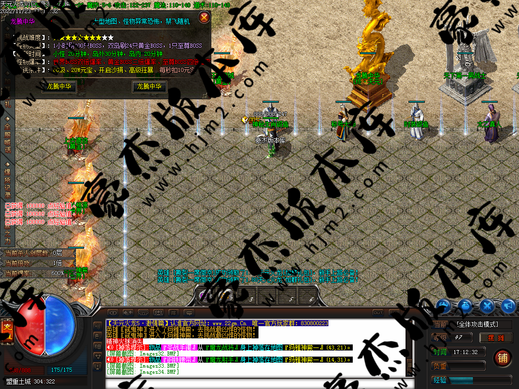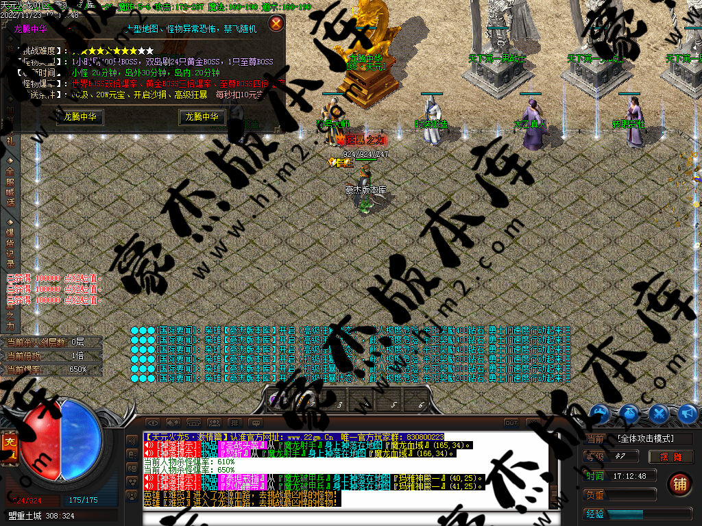 本服为最新三职业火龙激情篇,所有货币和装备狂暴!打金玩家请绕道!