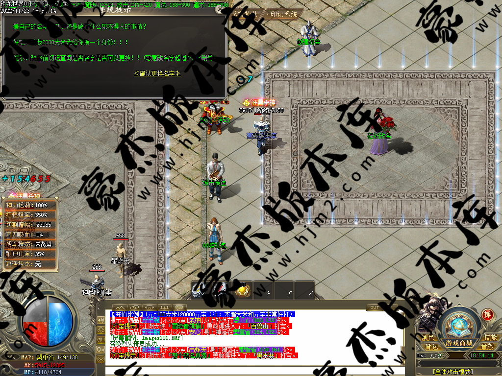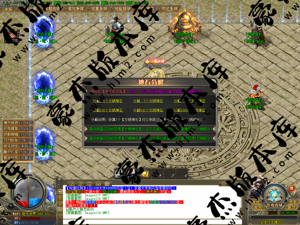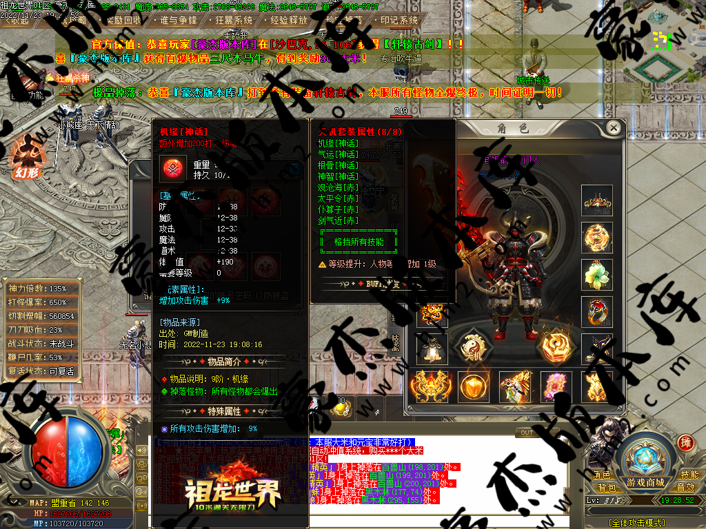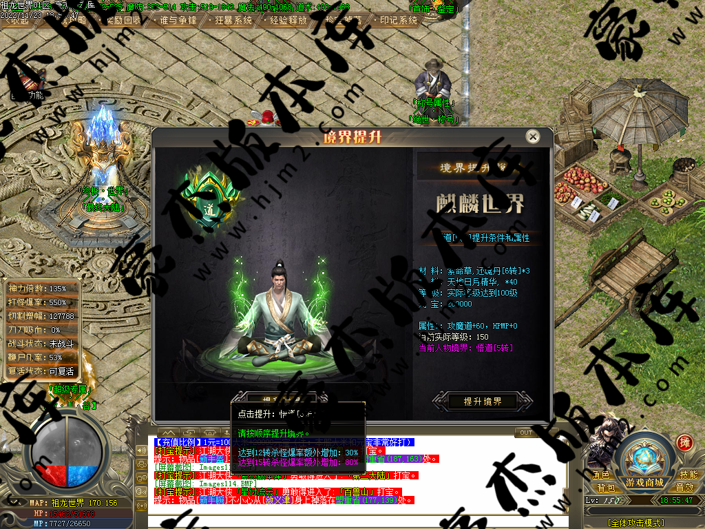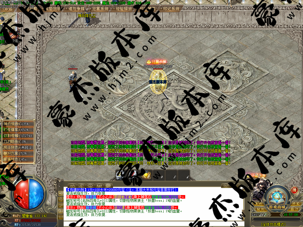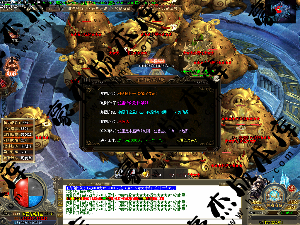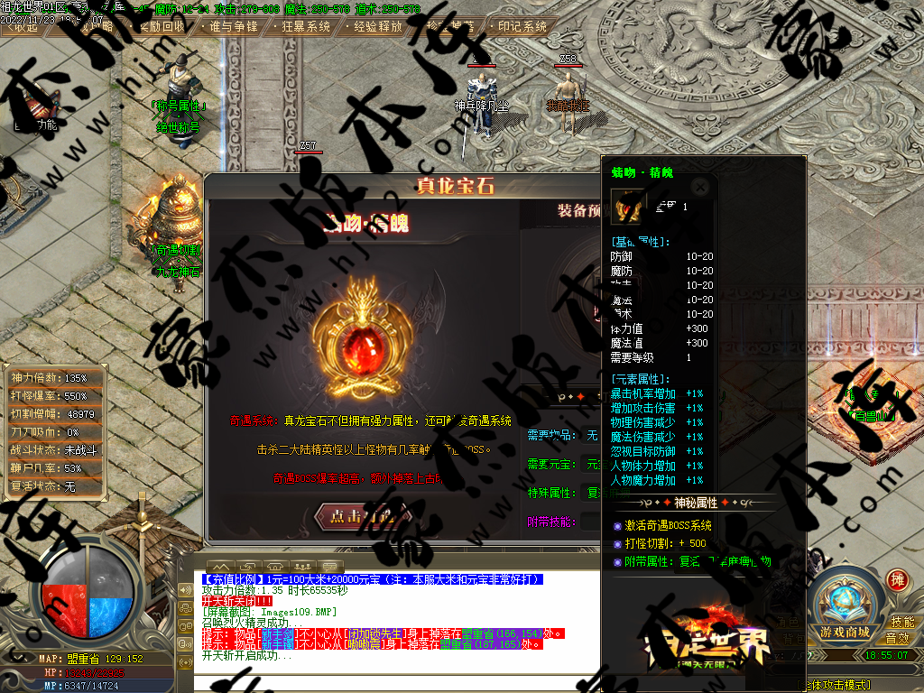 奇遇系统:九龙神石等级越高,触发几率越高,奇遇BOSS爆率超高,额外掉落印记。