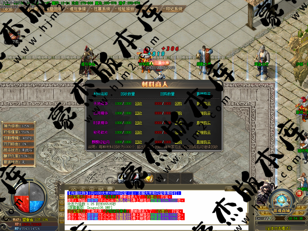 土豪玩法:各种收材料换元宝,开地图,打全爆,随意的玩耍,大哥的世界我不懂。