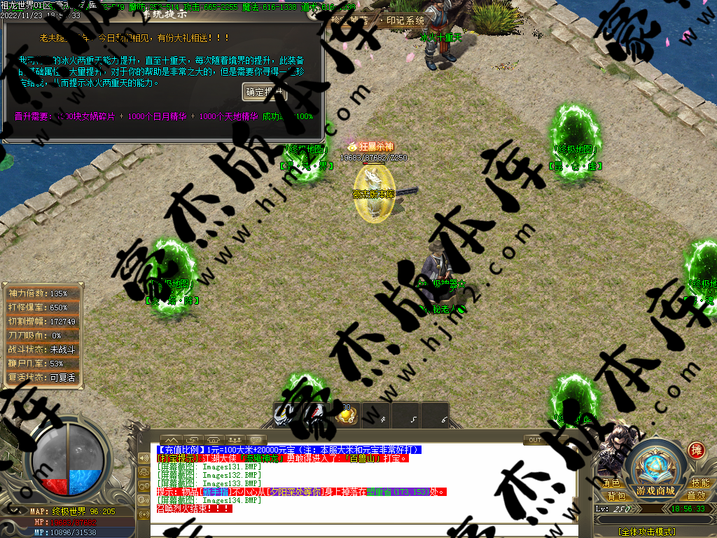 玩法介绍:一大陆打全1-5转材料,5转后马上进入二大陆,真正的游戏才刚刚开始。