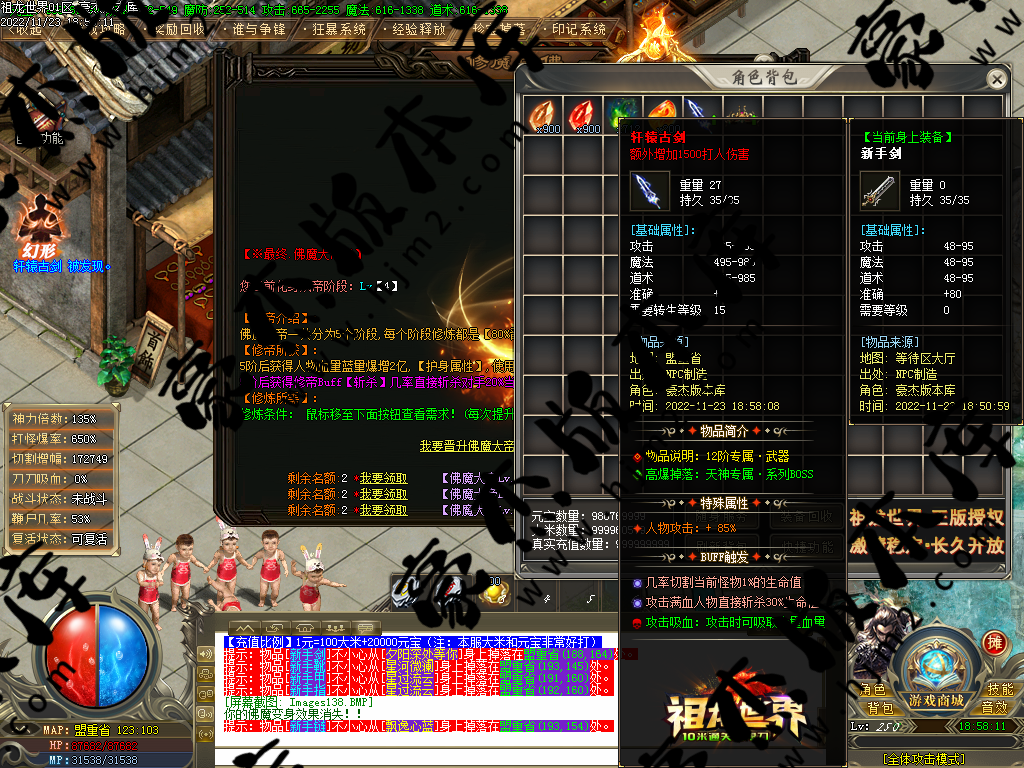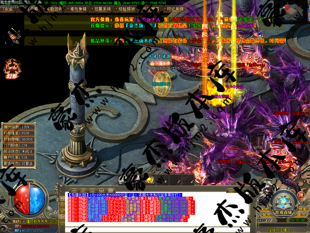 付费购买-祖龙世界10米通关无限刀单职业传奇版本-ESP插件-带假人光柱-奖励回收-珍宝掉落-神技强化