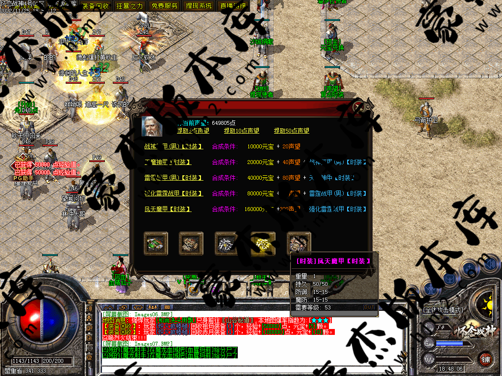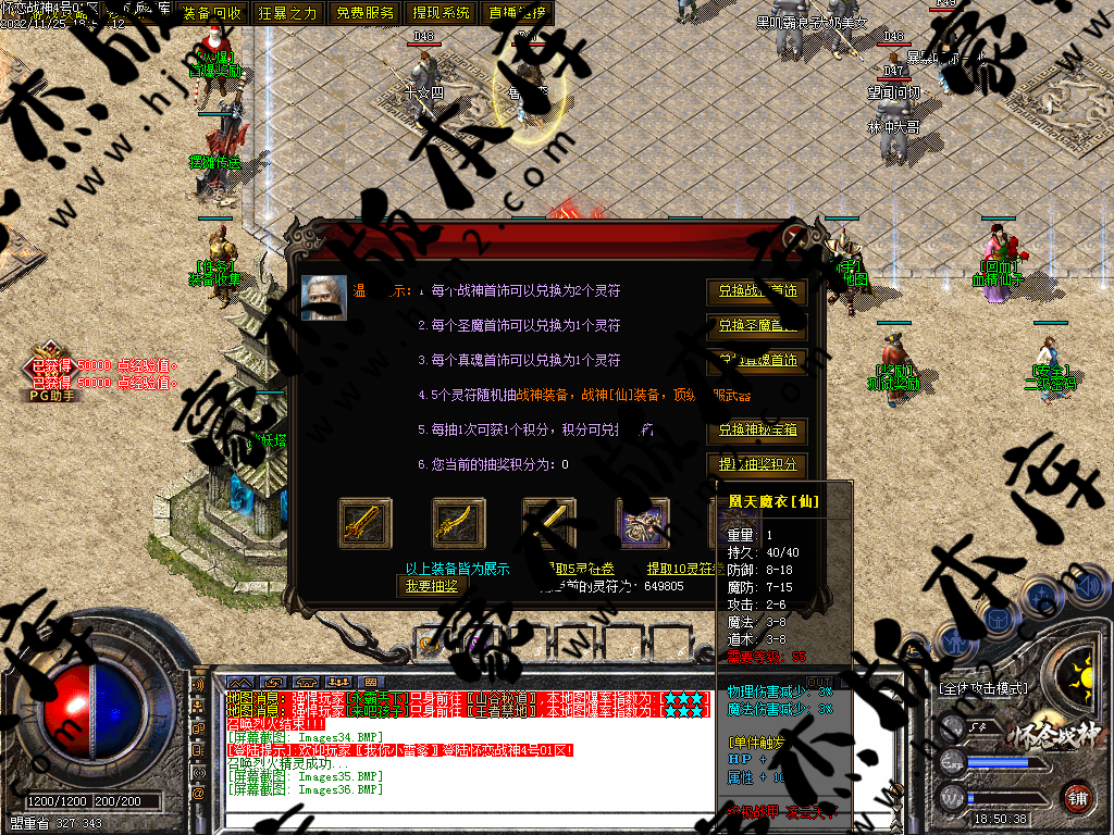 装备:赤月-雷霆-强化-战神,为增加耐玩性添加战神[仙]品套。