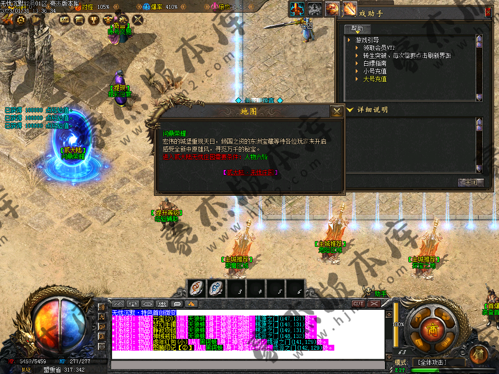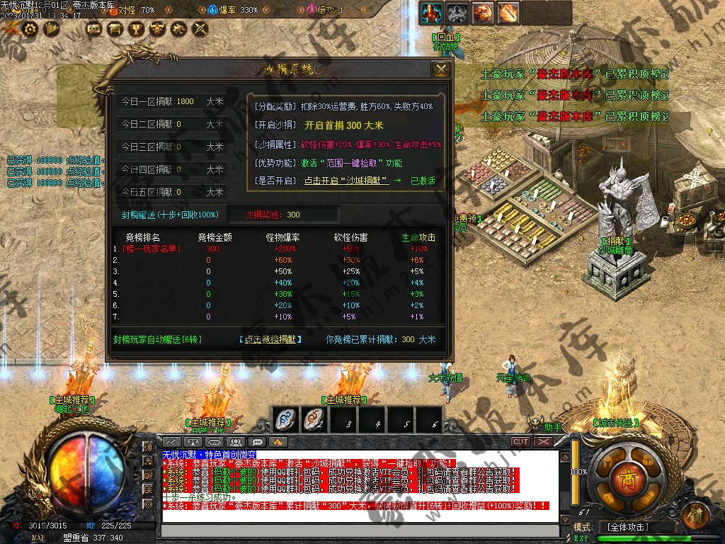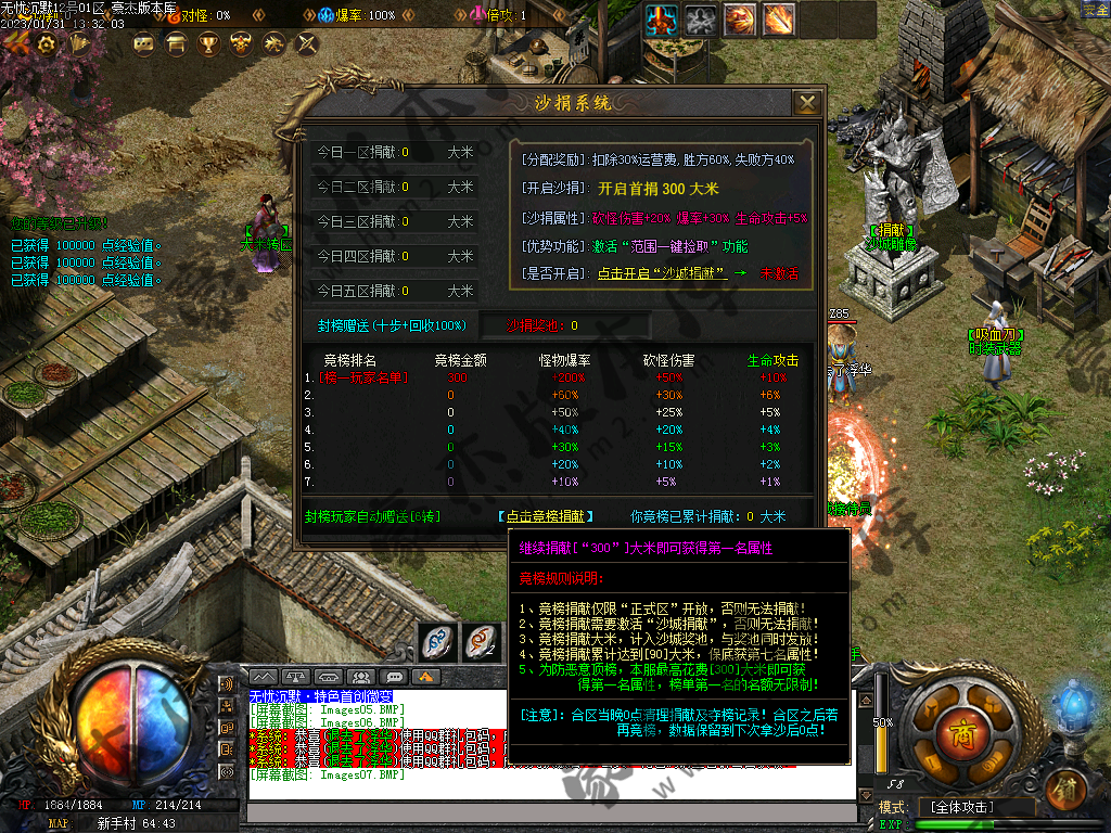 <> 2.NPC直接领取免费的<沙城捐献>,免费自动自动捡取!