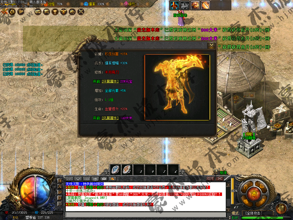 <赠送>:半月弯刀、爆率+30%、砍怪伤害+15%