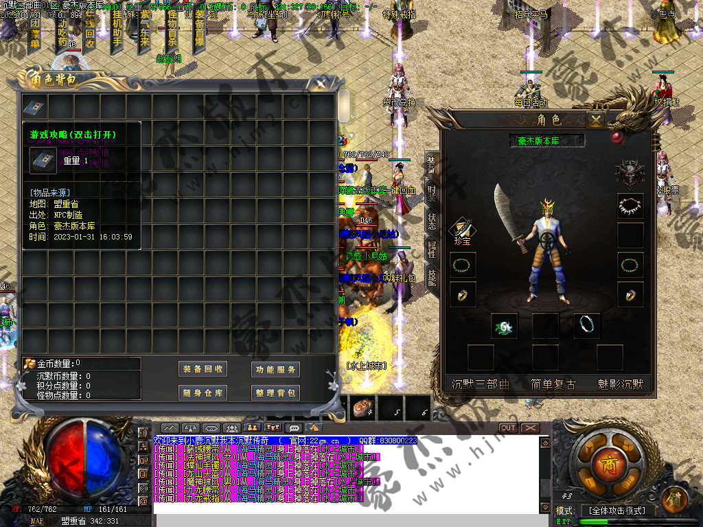 付费购买-沉默三部曲单职业版本-带假人-光柱-自动回收拾取-大陆多