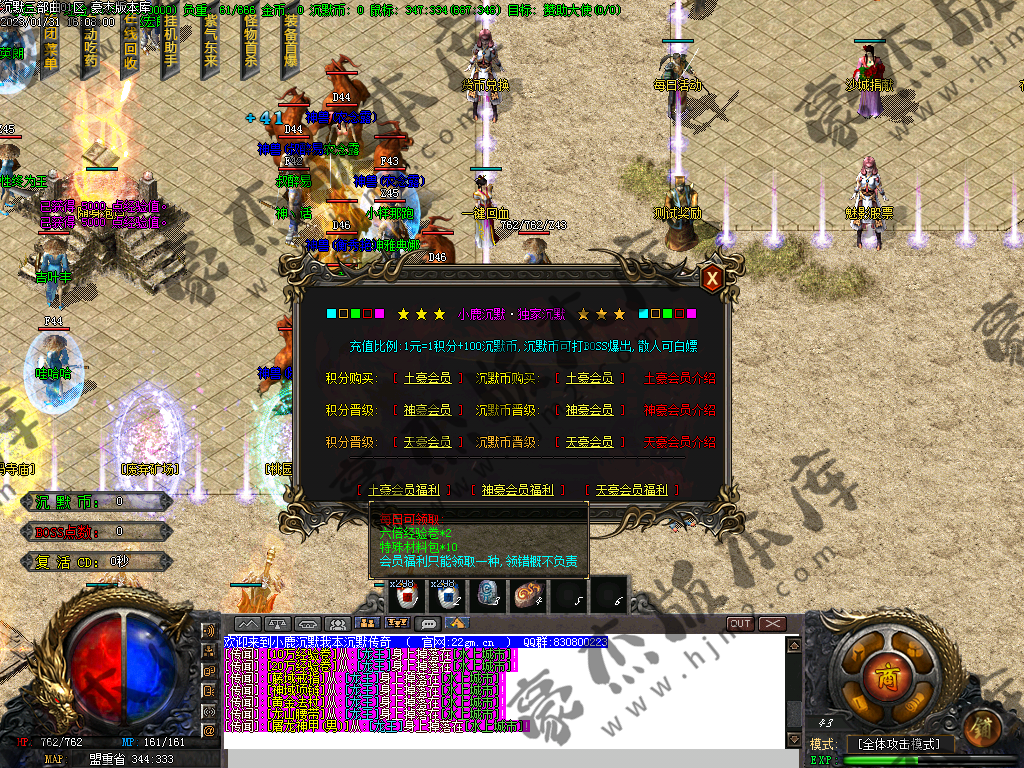 2)神豪会员:1号方式:188积分免费领取 2号方式:扣去:2000沉默币领取 (属性以及赠送礼包详细NPC查看)