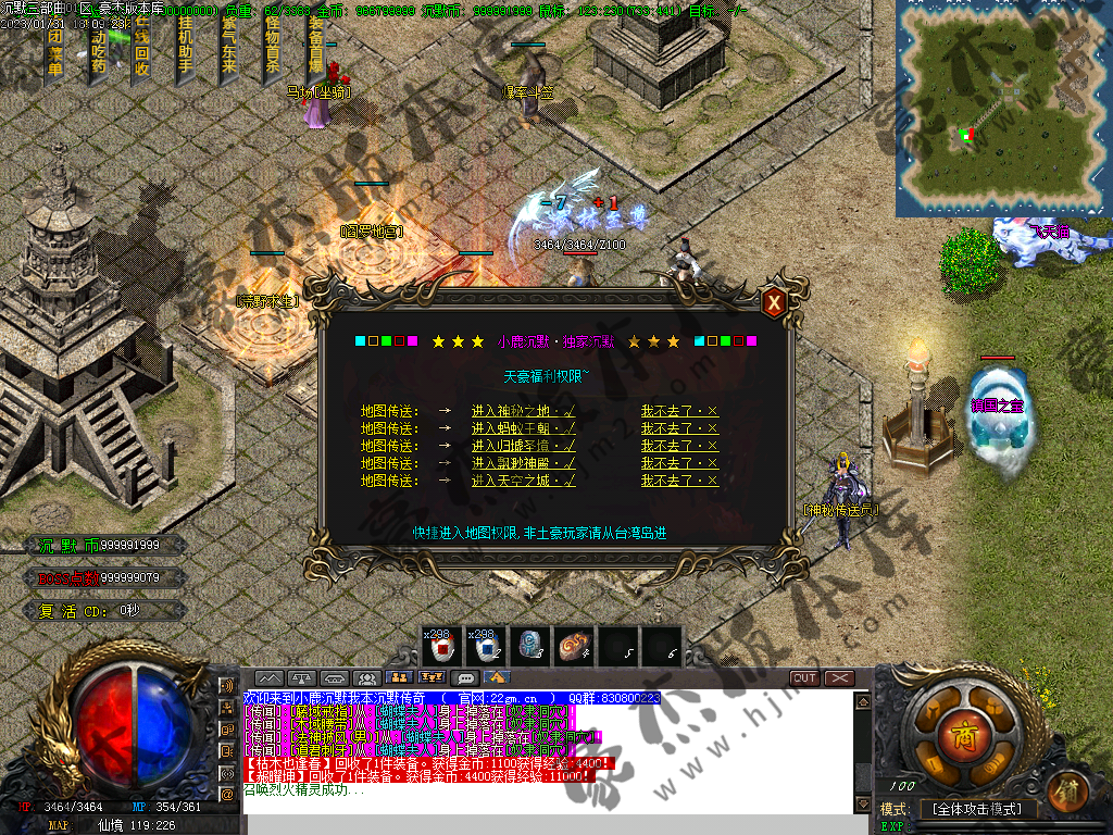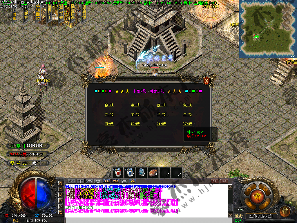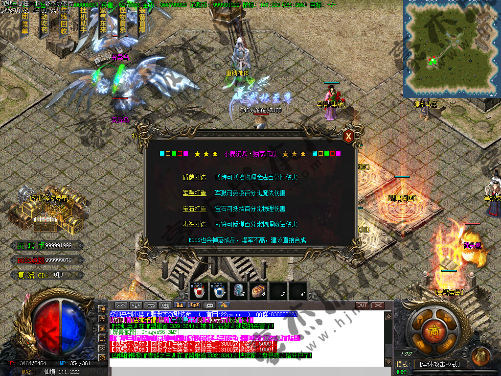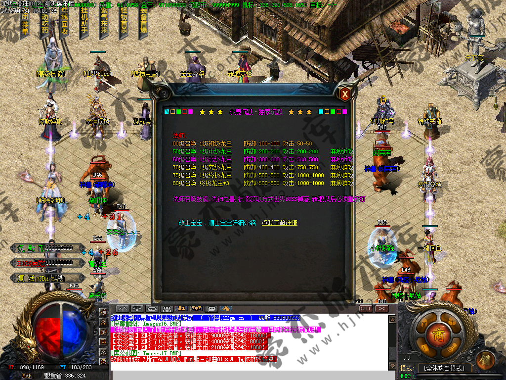 1) 上线后领取qq群礼包(888888)获取三职业召唤宝宝技能书,一套起步特殊,非常爽(必备)