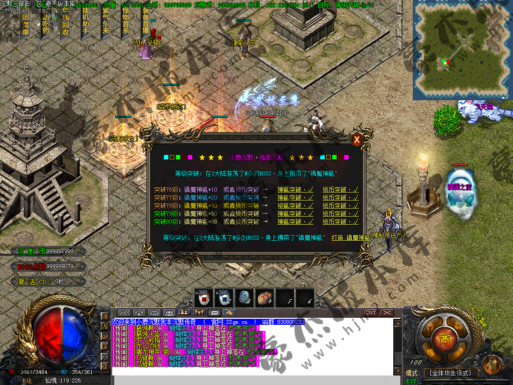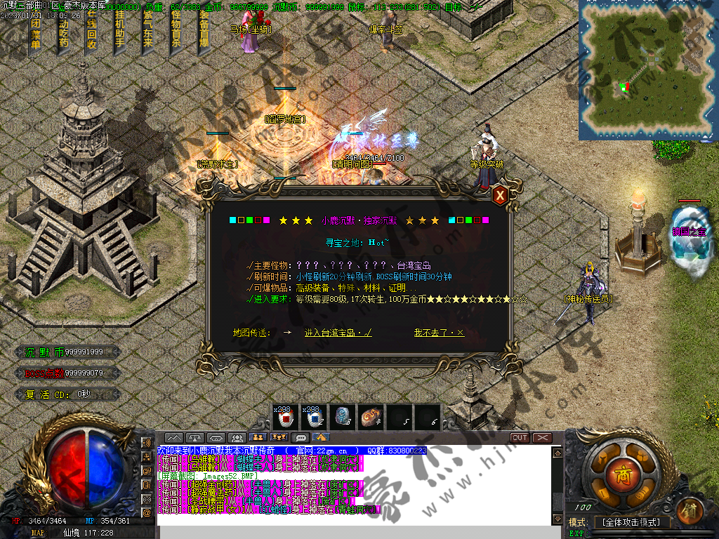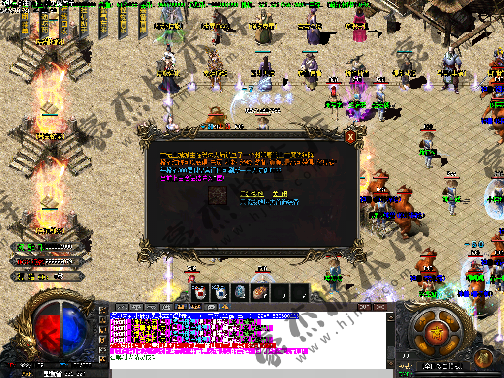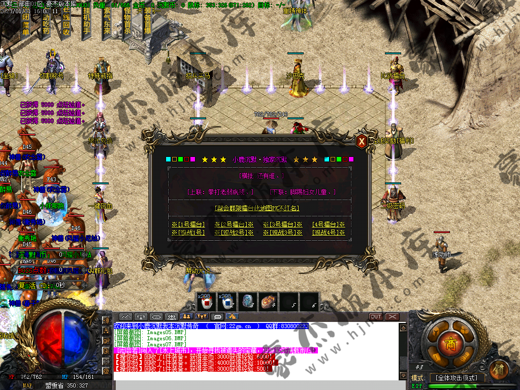 1) 上线后领取qq群礼包(888888)获取三职业召唤宝宝技能书,一套起步特殊,非常爽(必备)
