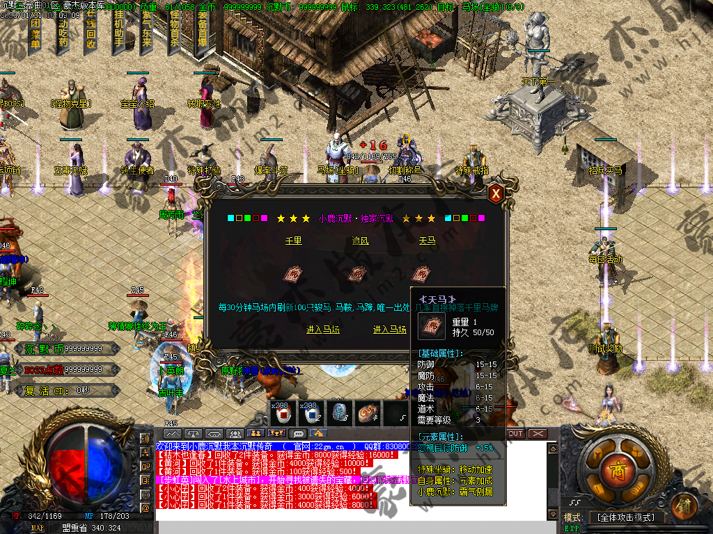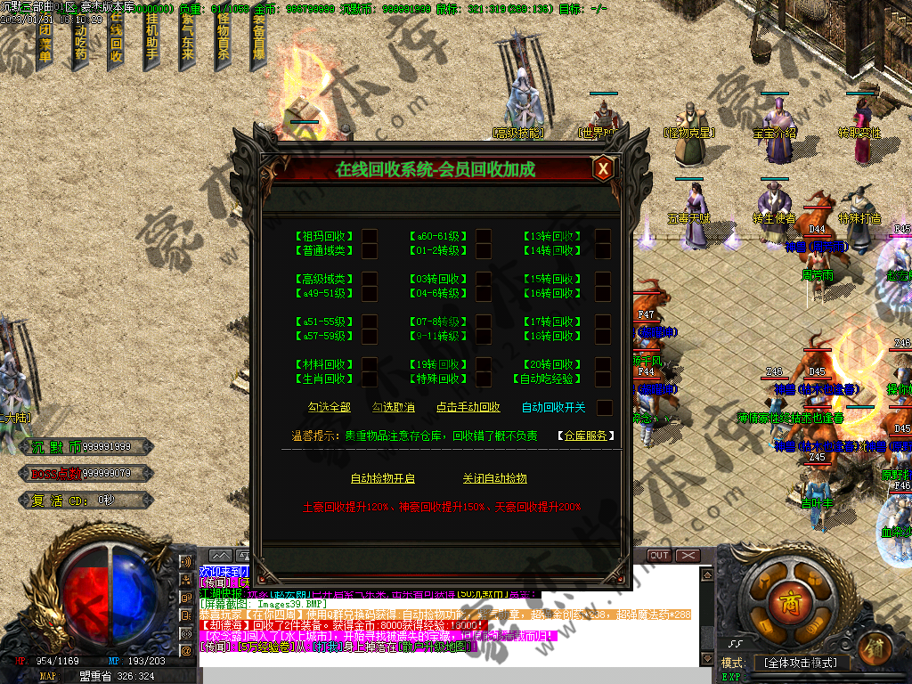 宝宝系统在土城左边请看清楚,对前期帮助很大!,3种会员属性不同,回收加成,爆率提升,神力倍功都有不同,请在NPC详细查看