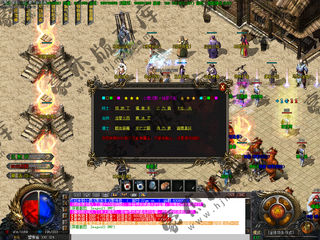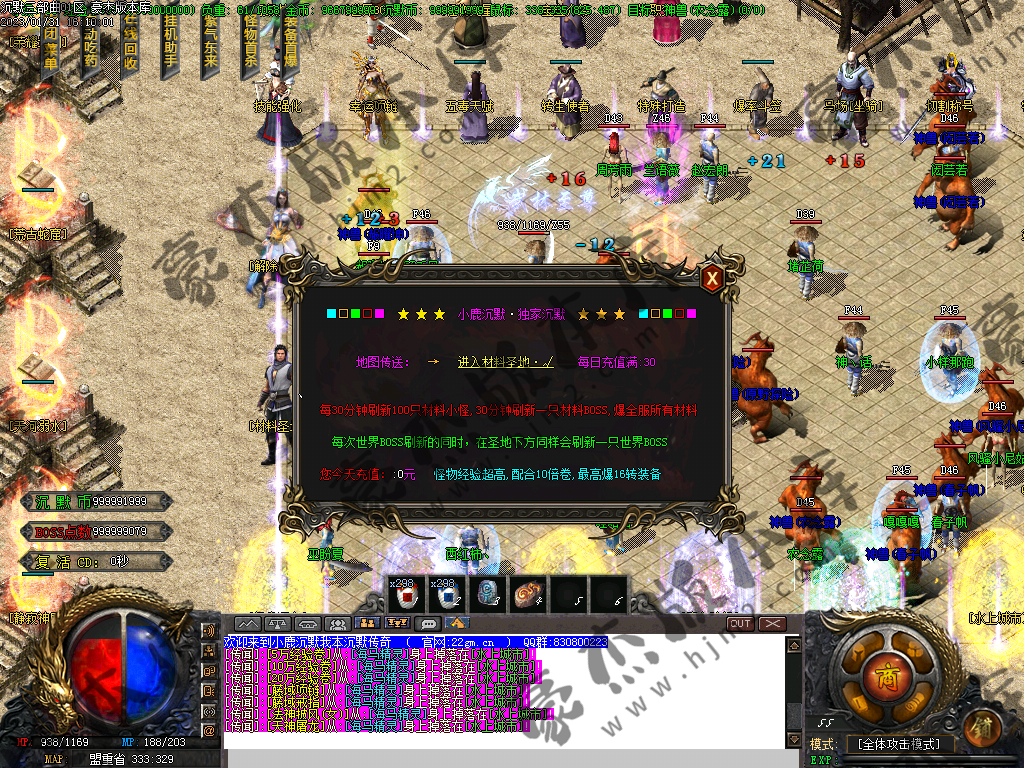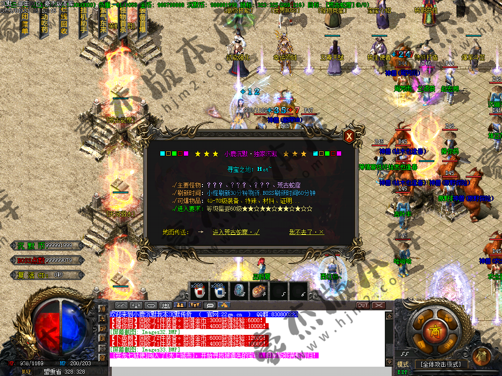 各种福利地图,荣耀地图,活动地图,有实力一定要进去打,世界BOSS等一定要想办法干掉!特别是活动怪,各种材料,经验装备,沉默币必须打!