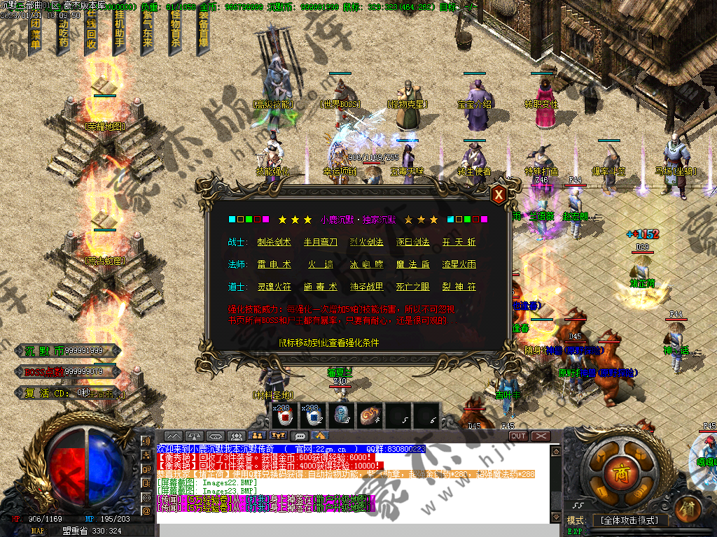 技能方面,请详细查看土城技能使者,可以强化,高级技能需要书页(靠打怪获得)