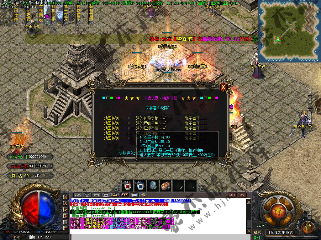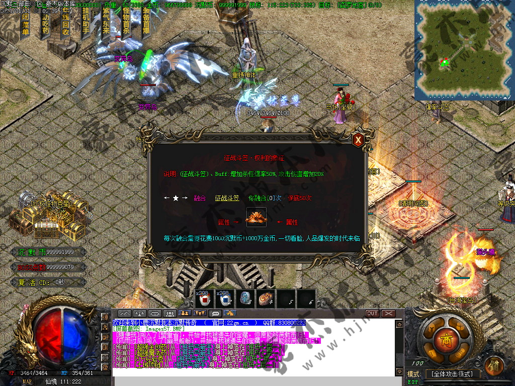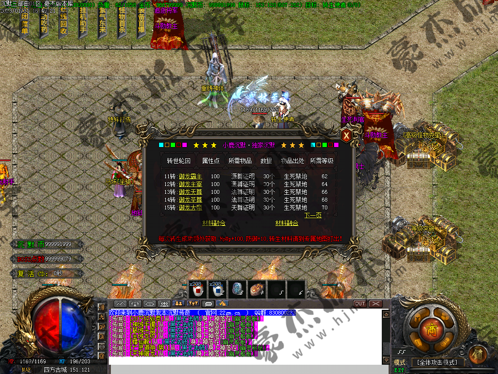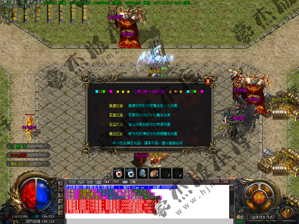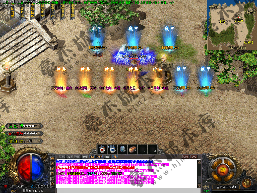 注意: 称号切割,紫气东来+捐献切割 可切任何怪物! 9转以上的武器带吸血 (包含9转武器)
