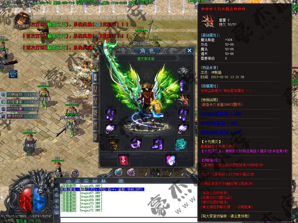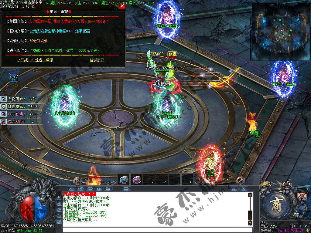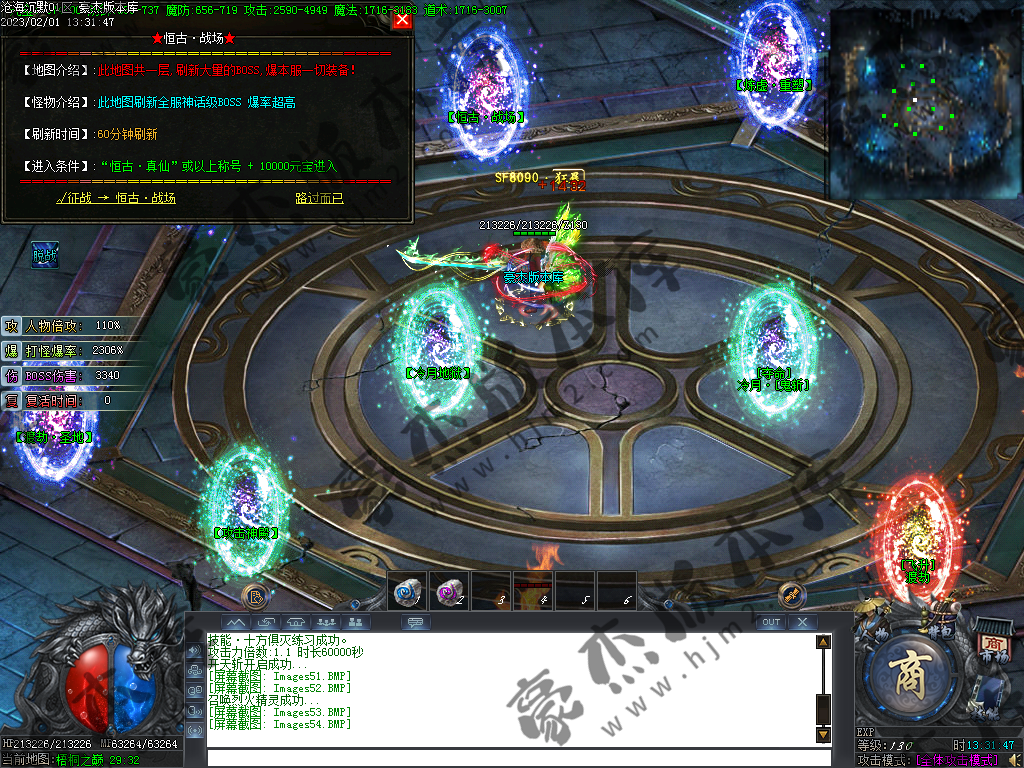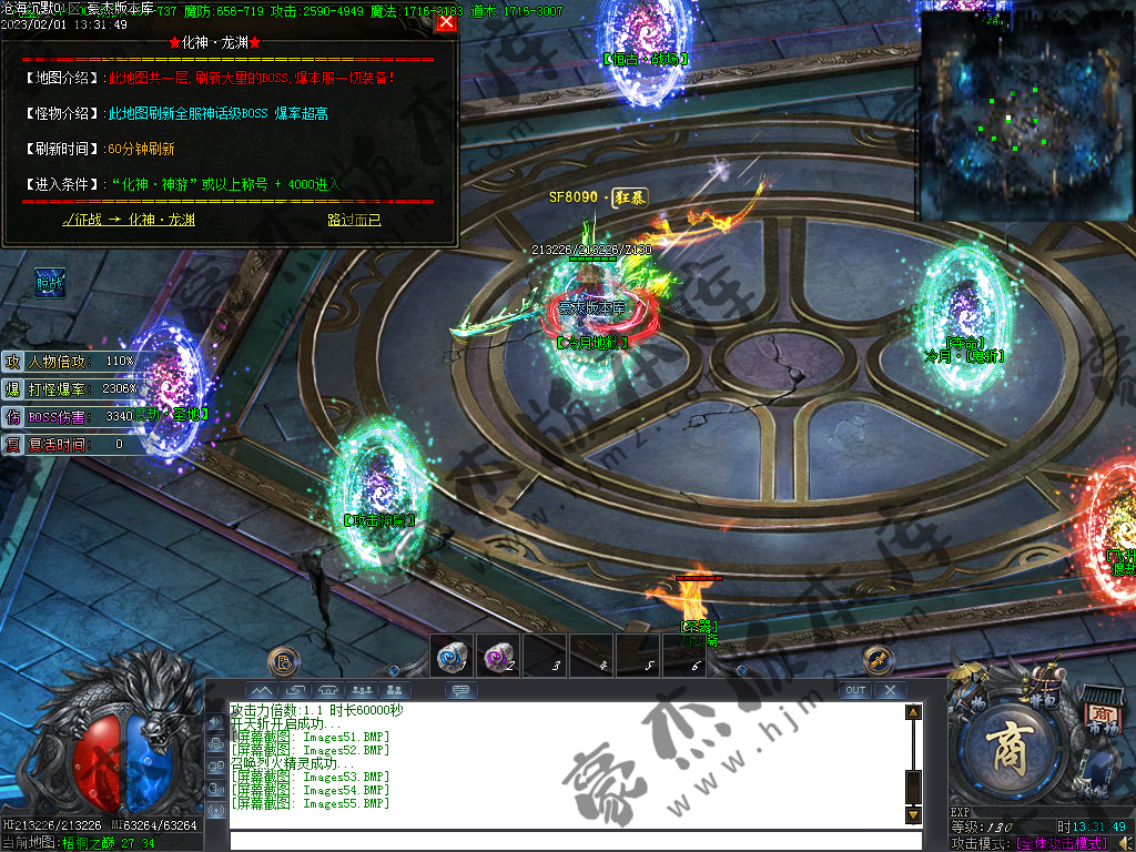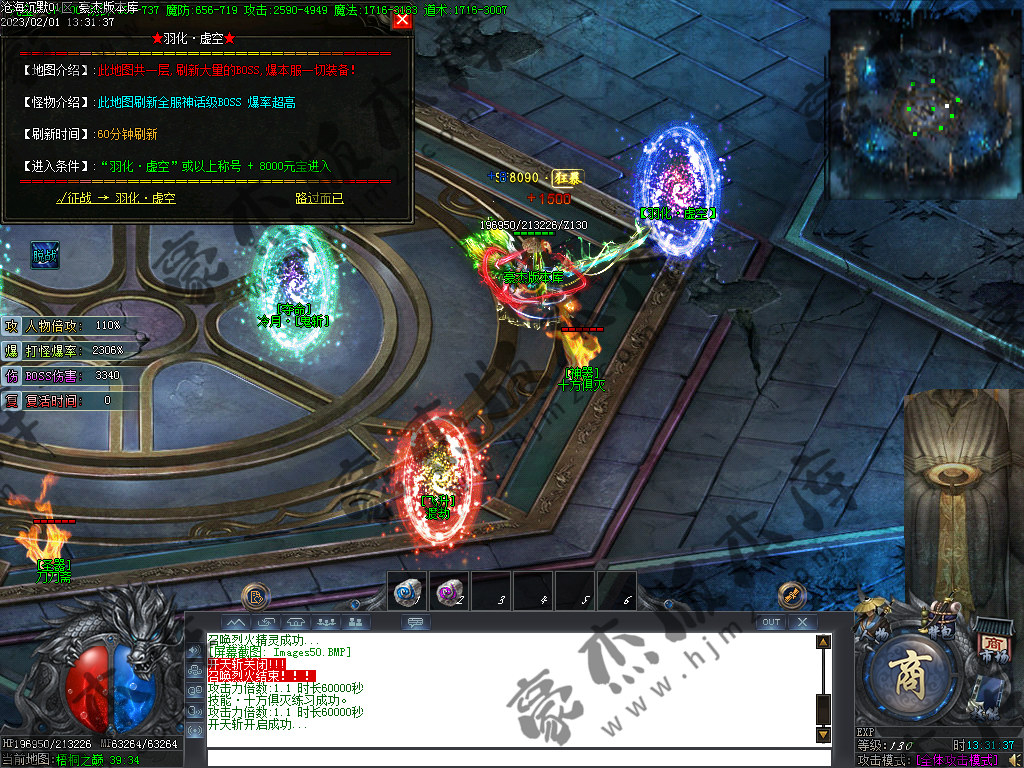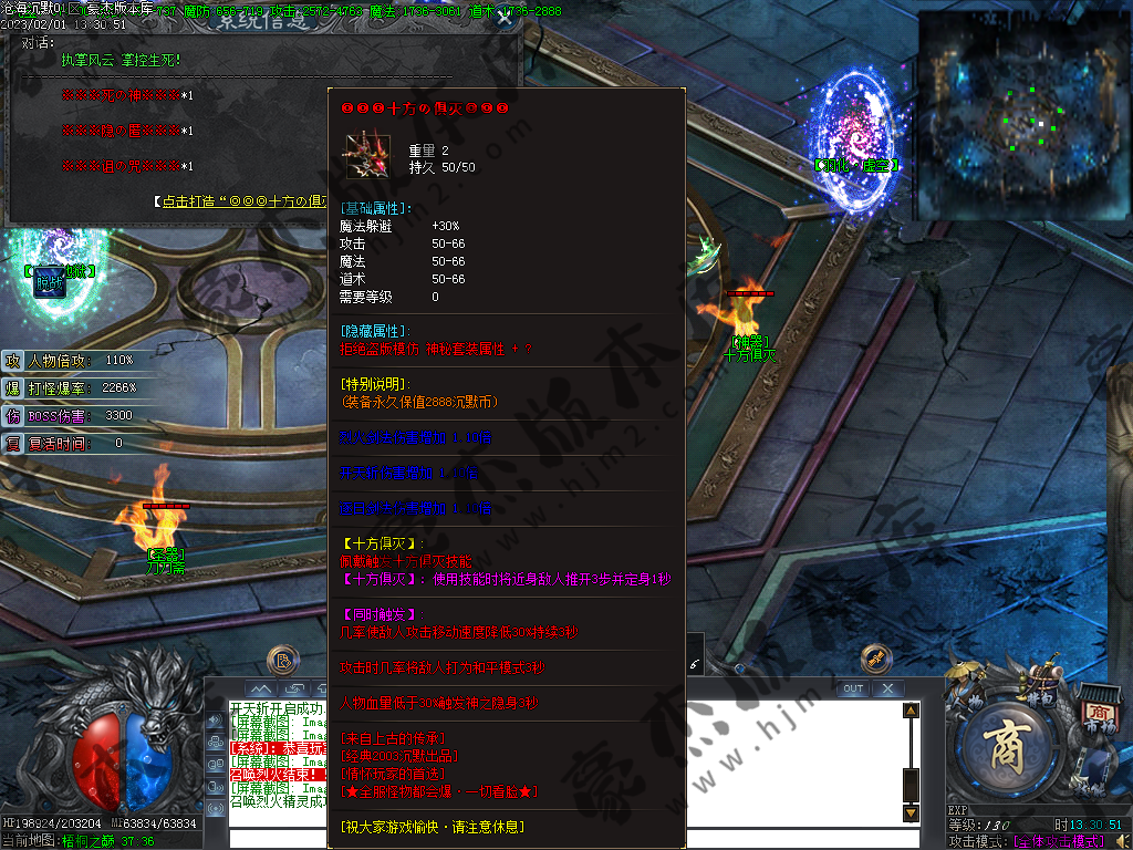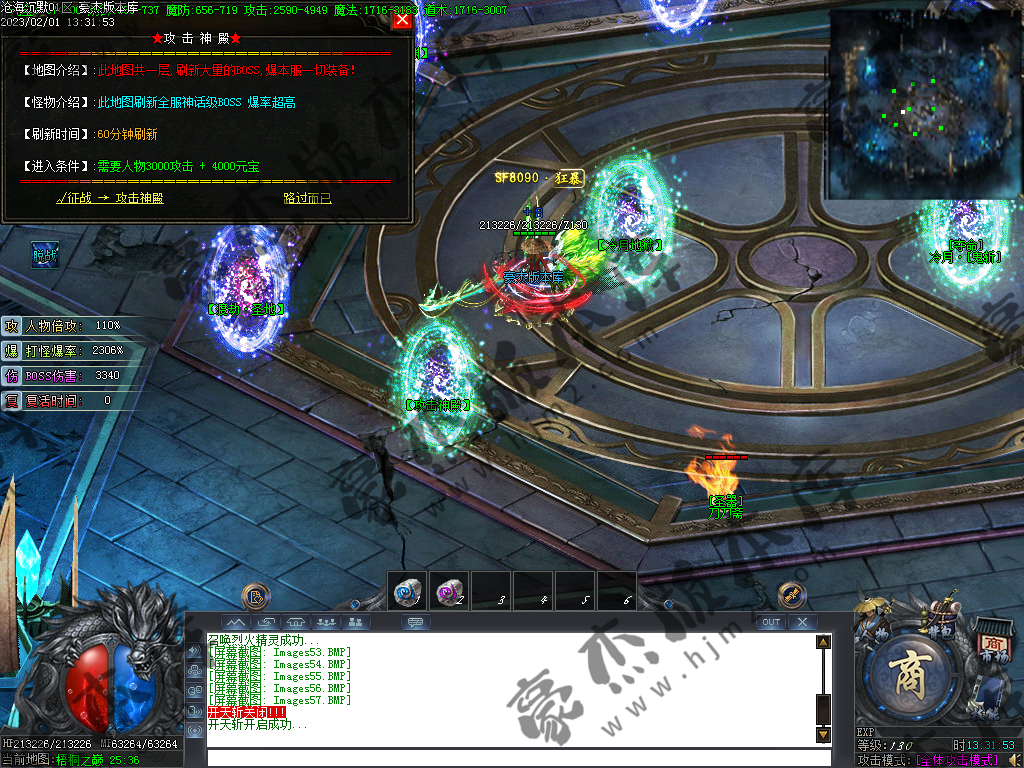 注意:背包F9一定要把古神珠双击激活,进入时空之门,就可以获得终极古神珠就可以畅玩所有大陆!百张地图首爆等你来打(自动回收+捡取+爆率500+倍攻300+切割32000)