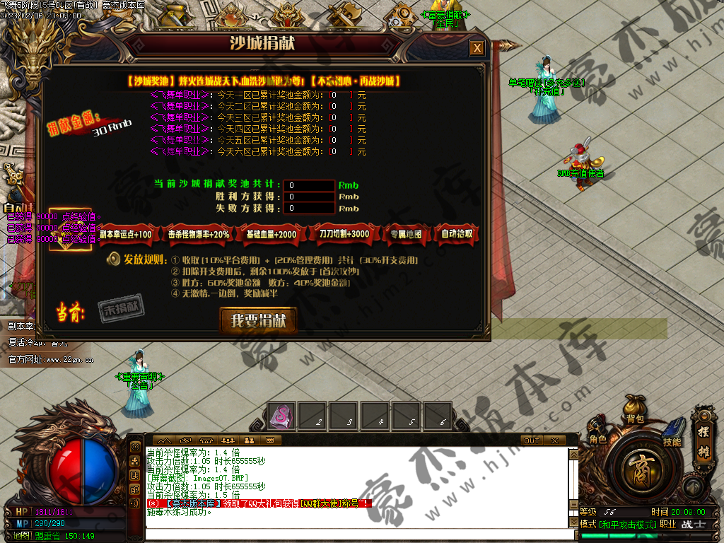 ⒈ 领取[飞舞会员赞助].领取五转 沙城捐献 刀刀切割卷 30%爆率 操起大刀直接就是盘!