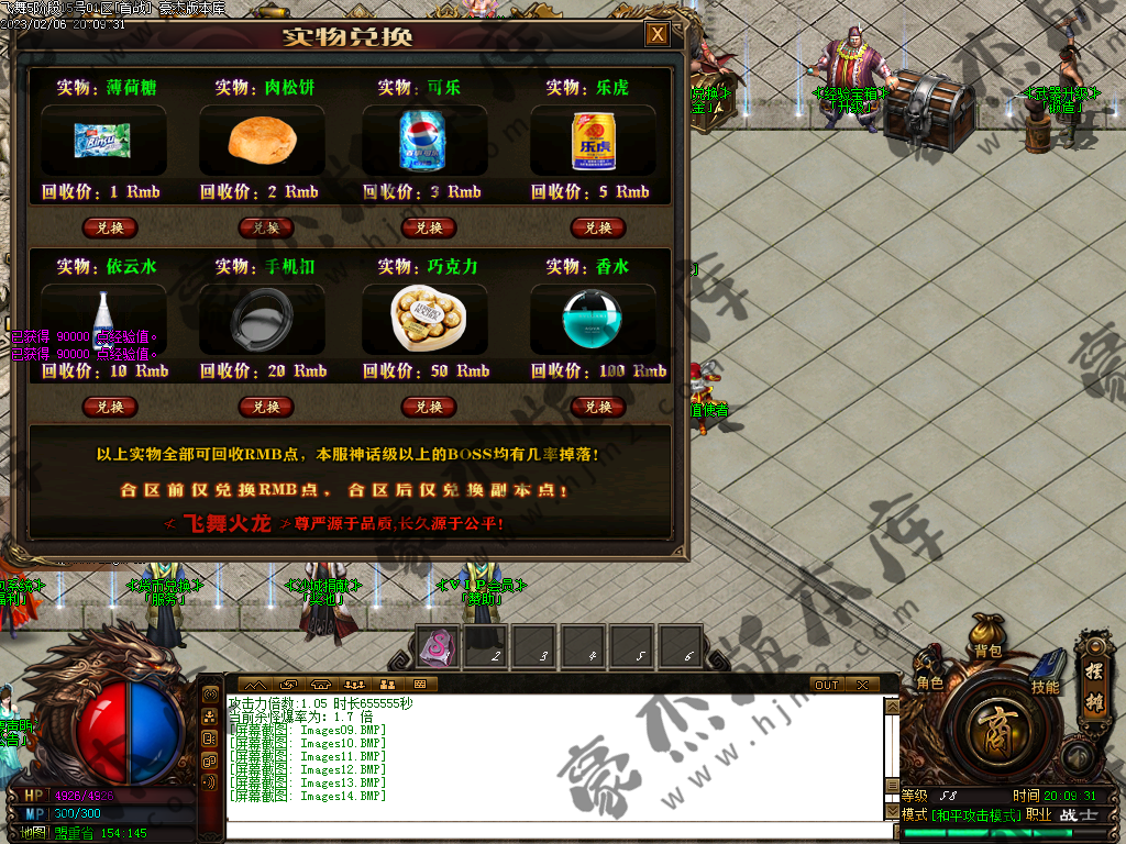 ⒉ 称号:纯火龙币升级,共十级,满级称号修炼全屏吸怪,刷元宝火龙币神技!