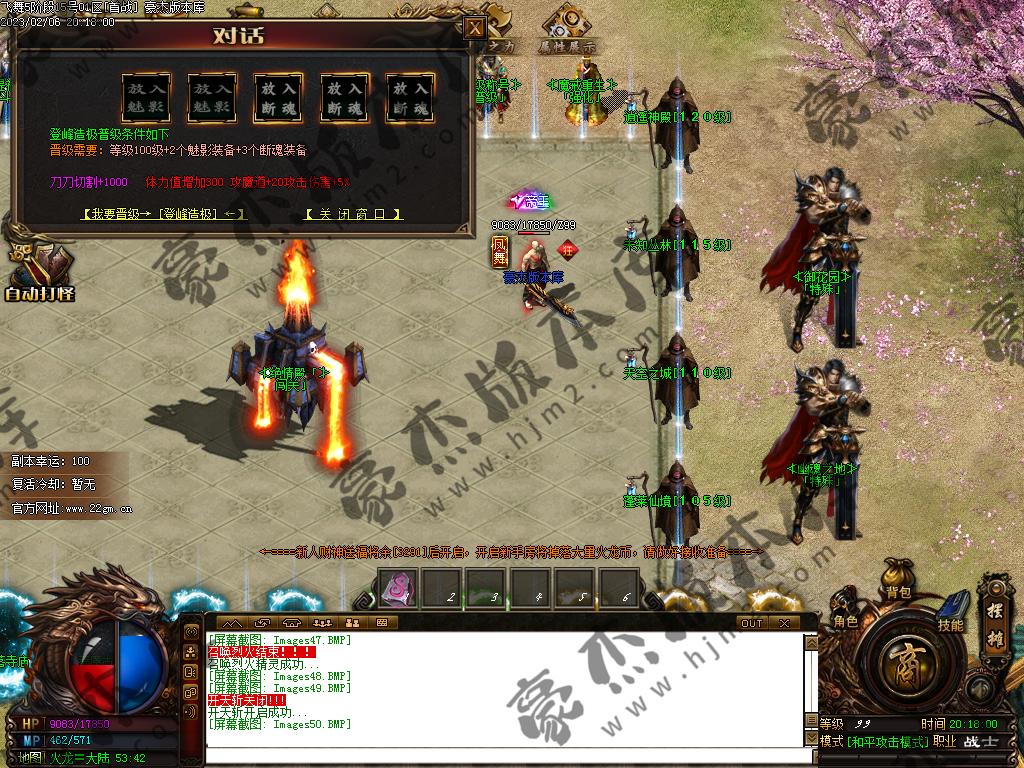 ⒈ 渡劫:纯元宝升级,共十劫,满渡劫修炼半月弯刀,刷元宝火龙币超快!