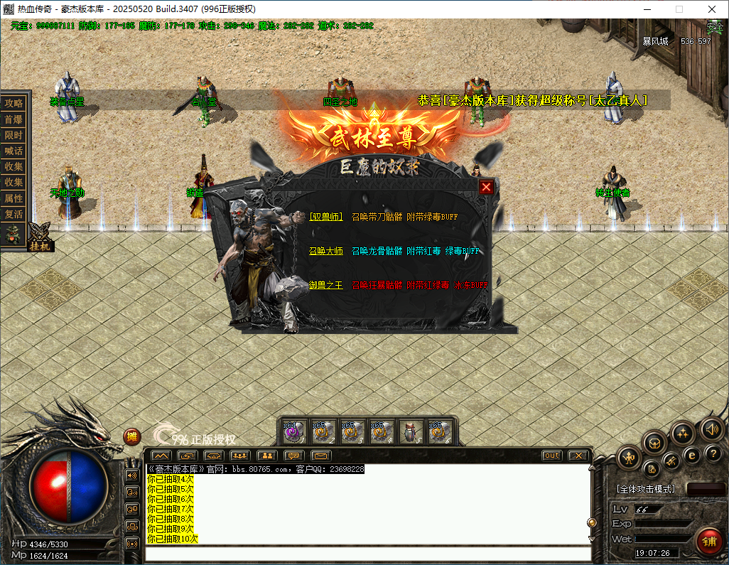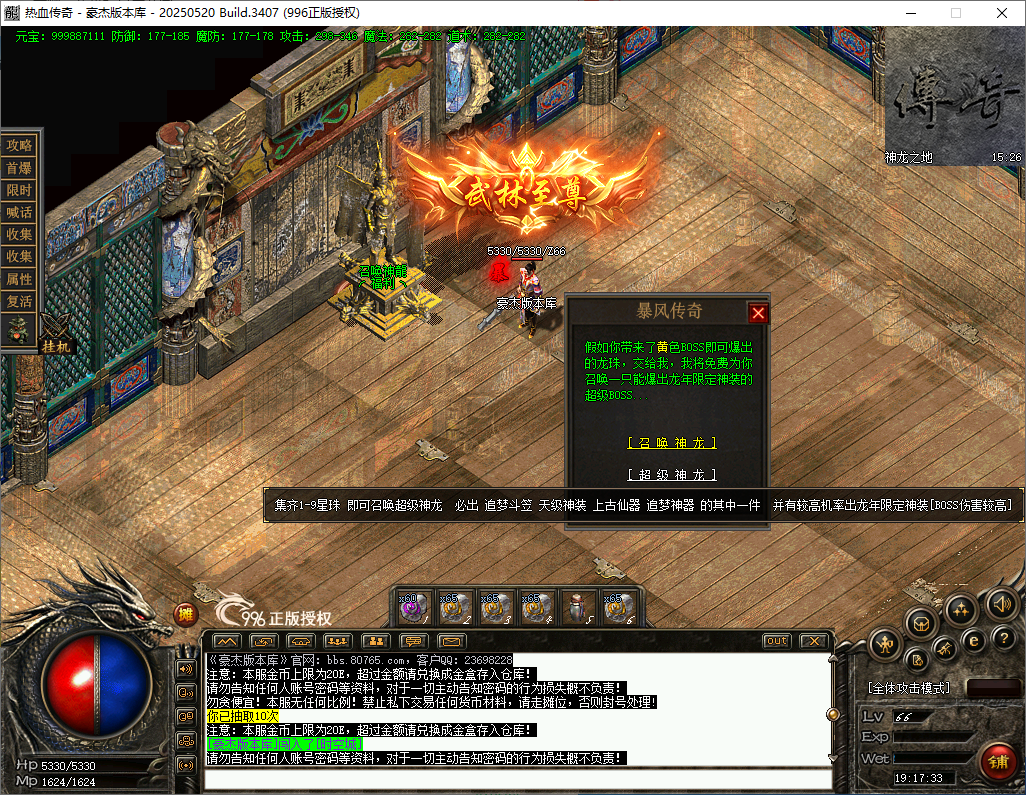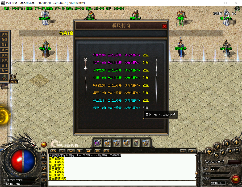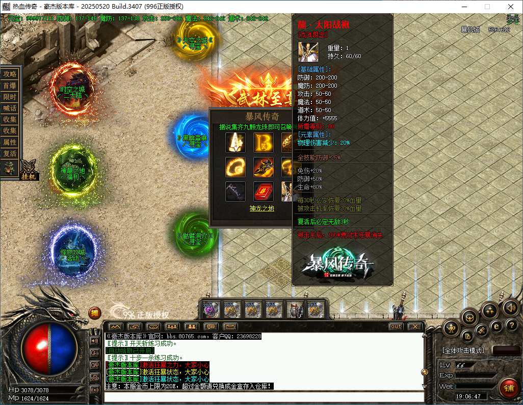 暴风传奇公益复古攻速神器单职业版本-光柱-特色buff-天赋-符文-宝宝_996PC引擎