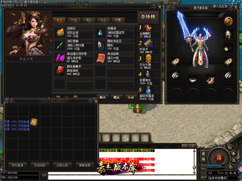 付费购买-5月_独家未知大陆起源篇打金单职业传奇客户端_带假人_盘古插件_沙城捐献_限时奖励_带光柱