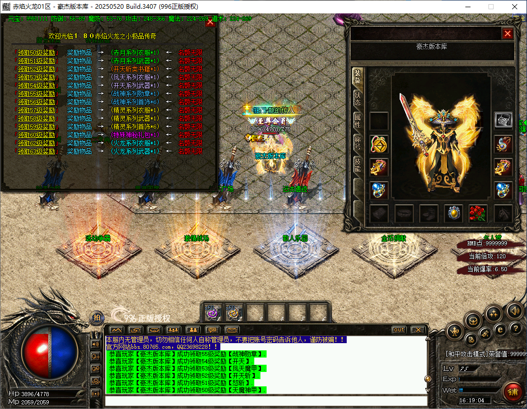 180赤焰火龙小极品三职业精品版本-比武大赛-擂台比武-争霸活动-技能强化神技-宝藏地图-装备加星淬炼-元素属性淬炼_996PC引擎