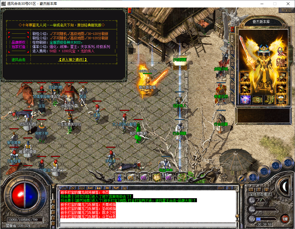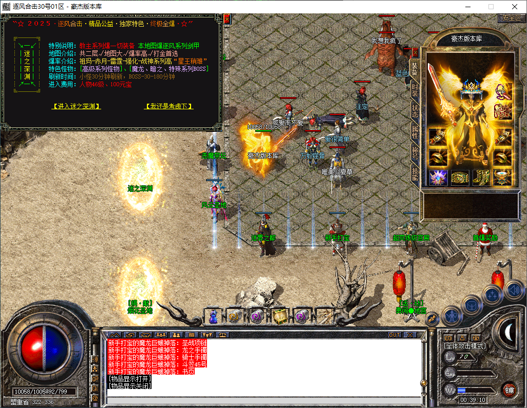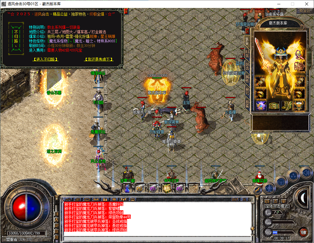 介绍六:本服最高60级地图,刷新一切大BOSS,公开透明,装备好打,