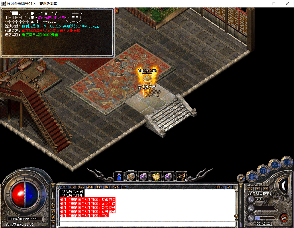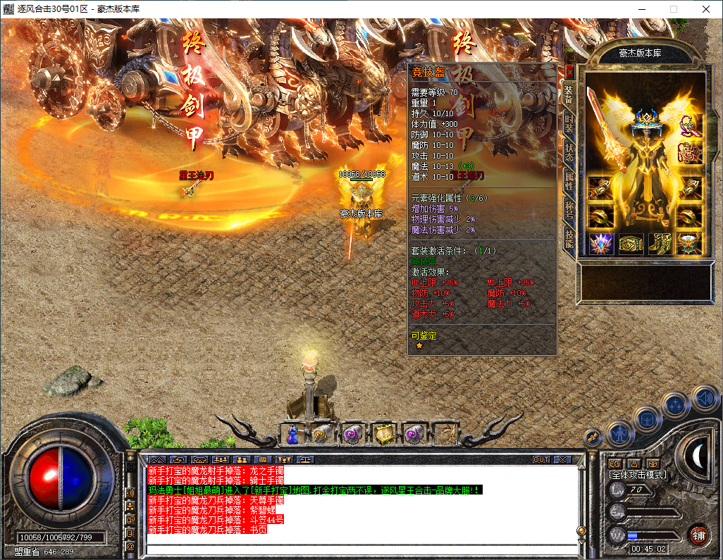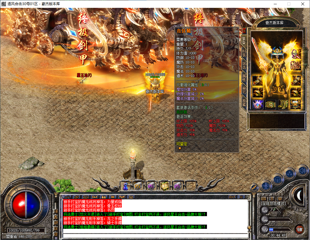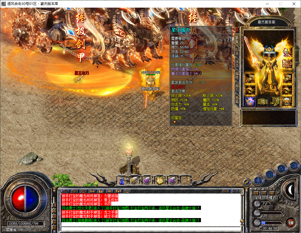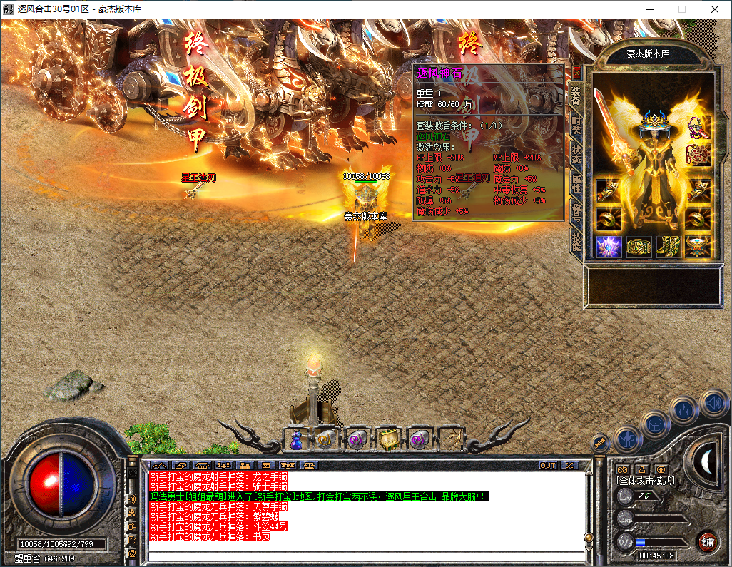 逐风合击-180星王终极合击-竞技三件套-装备鉴定属性套+锁妖塔-完整开区版本-狂暴+沙捐