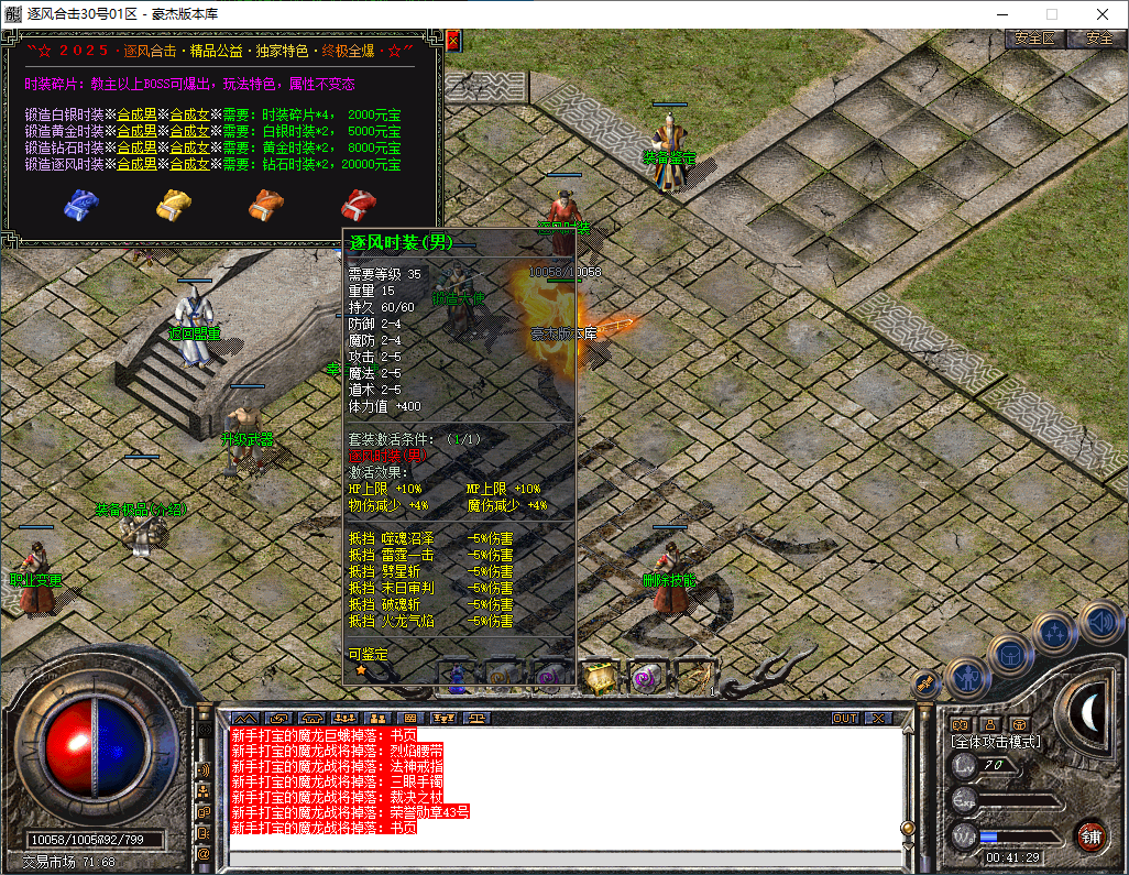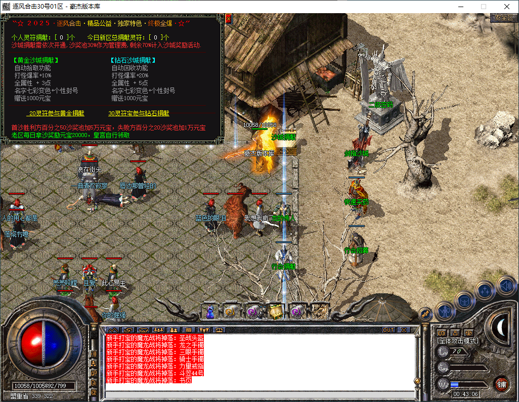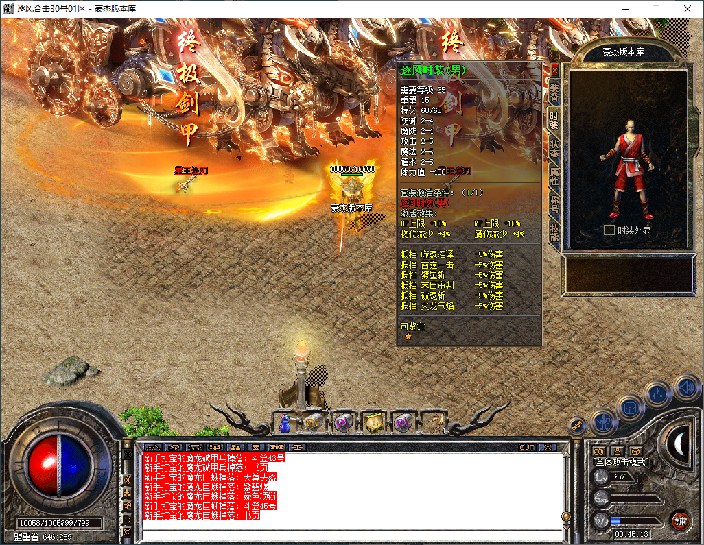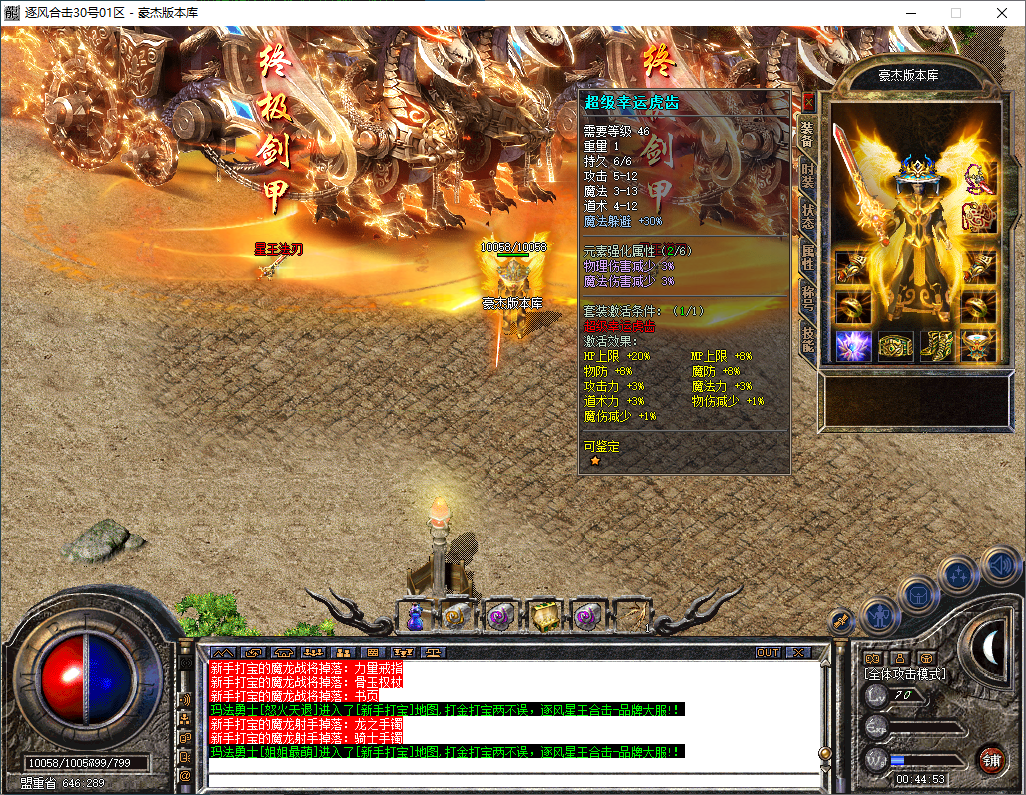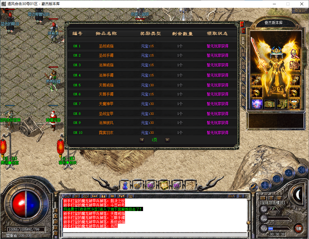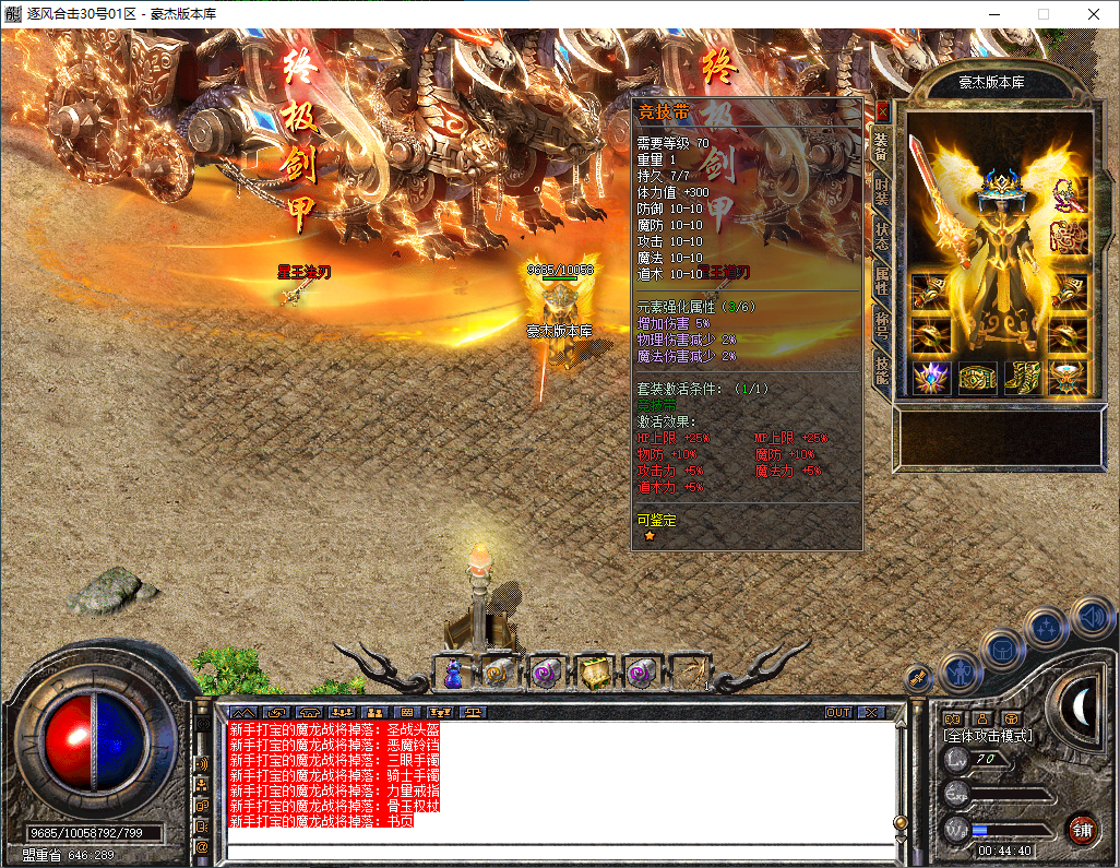 逐风合击-180星王终极合击-竞技三件套-装备鉴定属性套+锁妖塔-完整开区版本-狂暴+沙捐